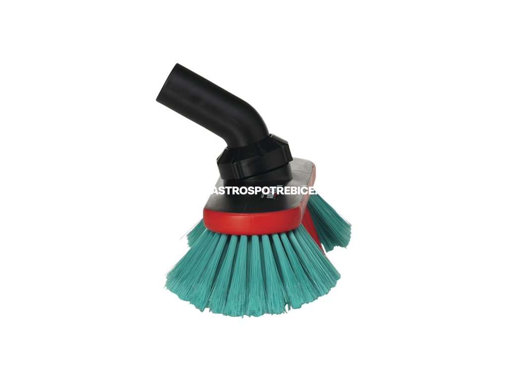 Oválný kartáč s měkkými a na konci roztřepenými štětinami pro lepší mycí účinek. Díky šikmému sklonu štětin se nástroj hodí pro čištění těžko dostupných ploch, jako například koutů, hran a nerovností. Průtokový kartáč disponuje otočným kloubem, který umožňuje nastavení čtyř různých úhlů. Vikan je přední světový výrobce čistícího nářadí. Výrobky dánské společnosti usnadňují úklid zákazníkům od Spojených států až po Čínu. Firma dodává smetáky, kartáče, vědra a další produkty.Doplňkové parametry