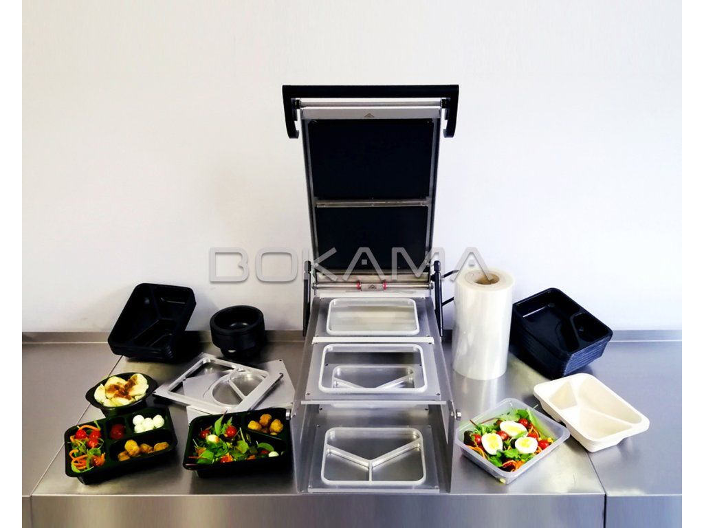Rozměry stroje: 620 x 370 x 290 mm Výška v otevřeném stavu: 830 mm Maximální rozměr vaničky: 270 x 185 mm Maximální výška vaničky: 210 mm Výkon: 1600W Napájecí napětí: 230V AC Hmotnost: 25 kg Připravenost k provozu / doba nahřátí: až 7 min Doba zatavení: 2 sec. Dva křížové nože pro řezání fólie Podavač těsnící fólie Konstrukce z vysoce kvalitní nerezové oceli Přesný systém regulace teploty svařování Teflonová těsnící deska Těsnící rameno usnadňující práci - zvyšuje přítlačnou sílu Pneumatické pohony pro snadné otevírání Standardní formy Hlavní vlastnosti stroje: balení dvou táců do velikosti 270 x 185 mm (včetně např. dvou 227 x 178 mm podnosy bez dělení a rozdělení na dvě / tři atd.) hloubka vaničky: až 200 mm plynulá a přesná regulace teploty těsnění pomocí a knoflík ve stupních Celsia informace o připravenosti k práci automatické odříznutí fólie z role po její délce během balícího cyklu - zatavení při obou vaničkách vyjímatelné formy z hliníku (kompatibilní s ostatními modely námi vyráběnými) formy symbol končící na DL teflonové těsnící desky s rovnoměrným tlakem stabilní a opakovatelné těsnění doporučená velikost fólie je 235 mm / 200 m podavač fólie umožňuje použití maximální velikosti role o rozměrech: šířka 270 mm / ø 200mm konstrukce stroje z nerezové oceli čtyři nožičky z protiskluzového materiálu zajišťují stabilní umístění stroje na pracovní stanici dostatečný tlak při balení díky rukojeti z plastu pro tepelnou izolaci a pevný úchop pohony podporující otvor těsnicí desky možnost utěsnění dvou různých typů táců v cyklu díky použití 2 forem, kupř. 227100DL a 227200DLBuďte první, kdo napíše příspěvek k této položce.