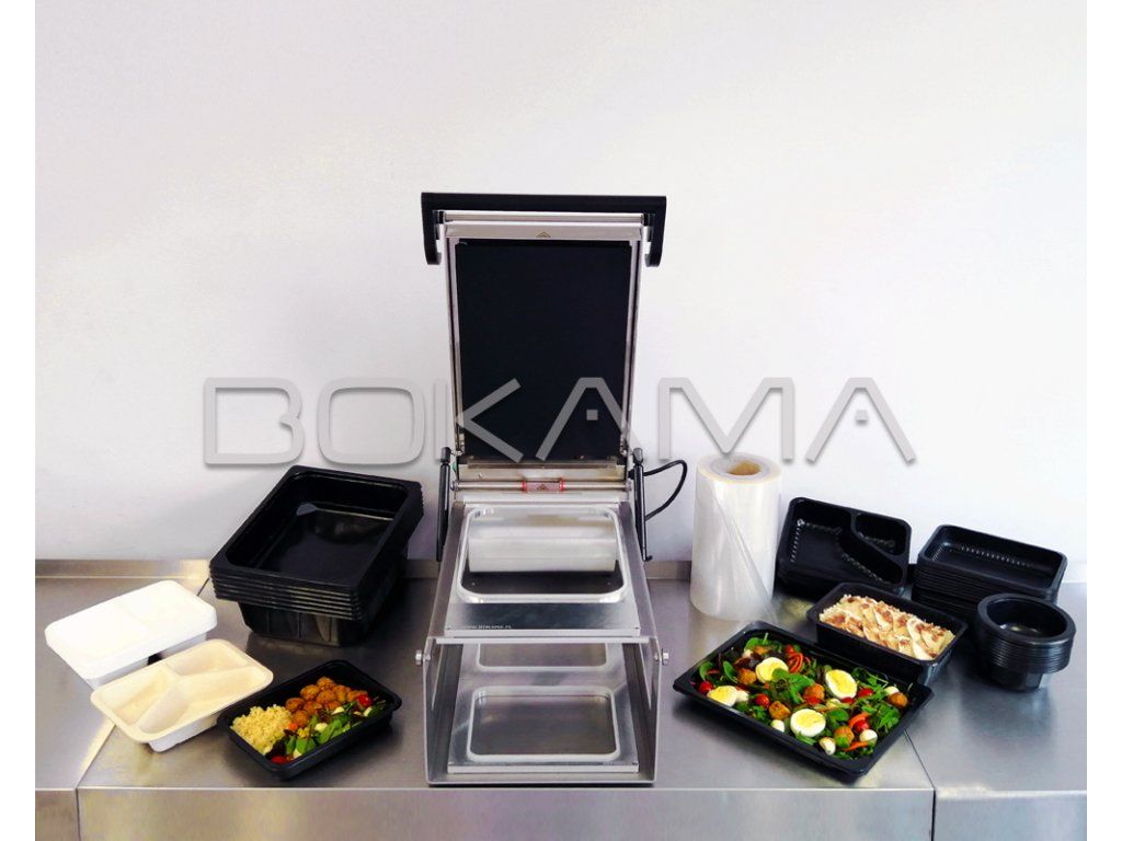 Rozměry stroje: 620 x 370 x 290 mm Výška v otevřeném stavu: 830 mm Maximální rozměr vaničky: 405 x 270 mm Maximální výška vaničky: 210 mm Výkon: 1600W Napájecí napětí: 230V AC Váha: 23 kg Provozní připravenost / doba nahřátí: do 7 min Doba zatavení: 2 sec. Jeden křížový nůž pro řezání fólie Podavač těsnící fólie Konstrukce z vysoce kvalitní nerezové oceli Přesný systém regulace teploty těsnění Teflonová těsnící deska Těsnící rameno usnadňující práci - zvyšuje tlakovou sílu Pneumatické pohony pro snadné otevírání Standardní formy Hlavní vlastnosti stroje: balicí misky do velikosti 405 x 270 mm (včetně např. 325 x 265 mm – 1/2 GN vaničky) hloubka vaničky: až 210 mm plynulá a přesná regulace teploty těsnění pomocí knoflíku ve stupních Celsia informace o připravenosti k práci automatické odřezávání fólie z role po její délce během cyklu balení - zatavování vyjímatelná forma z hliníku, symbol forem končí GT teflonová těsnící deska s rovnoměrným tlakem stabilní a opakovatelné těsnění doporučená velikost fólie je 235 mm / 200 m podavač fólie umožňuje použití maximální velikosti role o rozměrech: šířka 270 mm / ø 200 mm konstrukce stroje z nerezové oceli nožičky z protiskluzového materiálu zajišťují stabilní umístění stroje na pracovišti dostatečný tlak při balení díky rukojeti z plastu pro tepelnou izolaci a pevný úchop pohony podporující otvor těsnicí desky možnost utěsnění v cyklu dvou táců díky použití 1 formy, kupř. 227100 GT a 227 200 GTBuďte první, kdo napíše příspěvek k této položce.