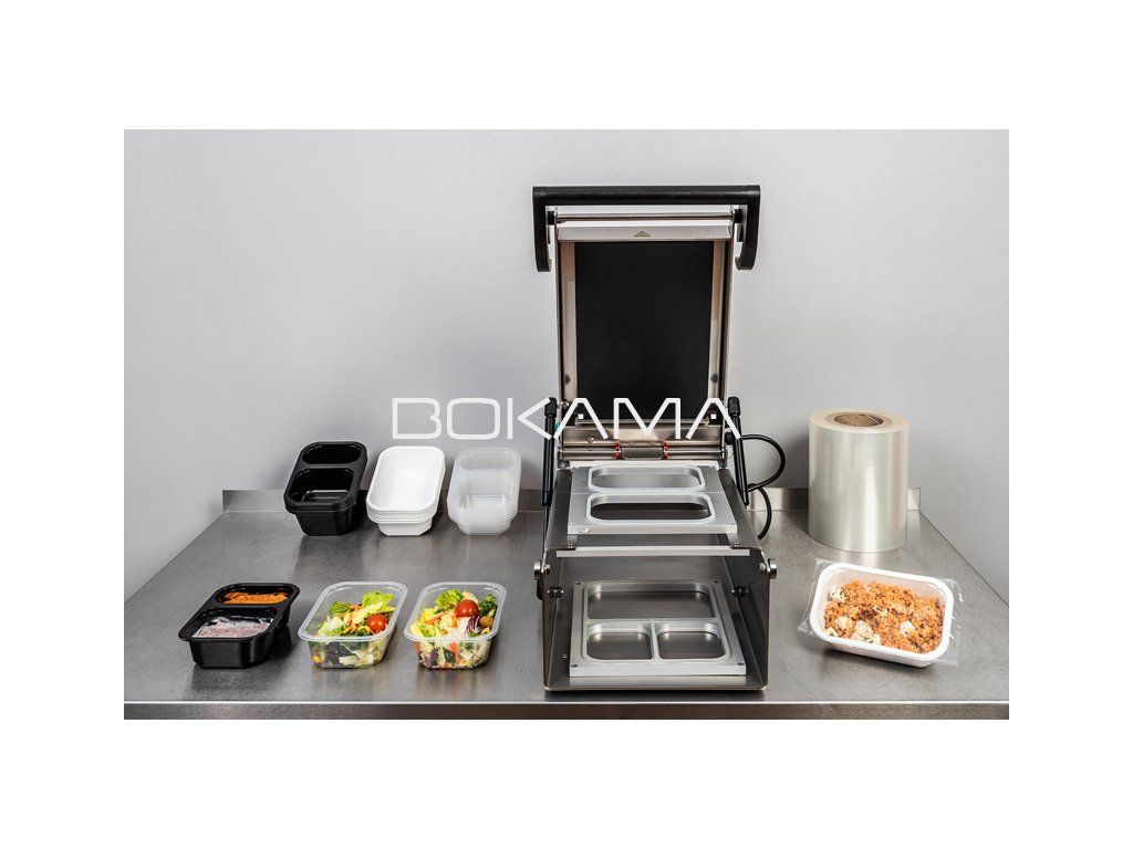 Rozměry stroje: 550 x 290 x 220 mm Výška při otevření: 550 mm Maximální velikost vaničky: 270 x 185 mm Maximální výška vaničky: 155 mm Výkon: 800W Napájecí napětí: 230V AC Hmotnost: 15 kg Připravenost k provozu / doba nahřátí: až 7 min Doba zatavení: 2 sec. Nůž s příčným řezem fólie Podavač těsnící fólie Konstrukce z vysoce kvalitní nerezové oceli Přesný systém regulace teploty svařování Teflonová těsnící deska Standardní forma Hlavní vlastnosti stroje: balicí misky do rozměru 270 x 185 mm (včetně například 227x178 mm jednodílné nebo dělené na dvě / tři atd.) hloubka vaničky: až 155 mm plynulá a přesná regulace teploty těsnění pomocí knoflíku ve stupních Celsia informace o připravenosti k práci vyjímatelné formy z hliníku (kompatibilní s ostatními námi vyráběnými modely) potažené teflonem těsnící deska s rovnoměrným tlakem stabilní a opakovatelné svařování automatické odřezávání fólie z role po její délce během cyklu balení - zatavování doporučená velikost fólie 185 mm / 200 m podavač fólie umožňuje použití maximální velikosti role o rozměrech: šířka 190 mm / ø 175 mm čtyři nožičky z protiskluzového materiálu zajišťují stabilní umístění stroje na pracovní stanici dostatečný tlak při balení díky rukojeti z plastu pro tepelnou izolaci a pevný úchop.Buďte první, kdo napíše příspěvek k této položce.