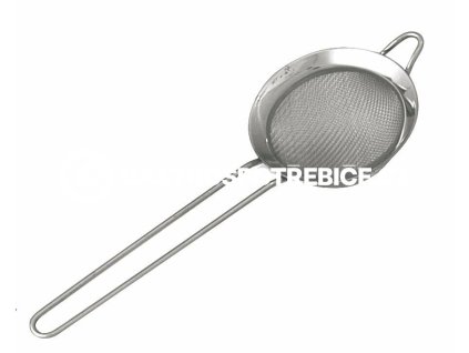 Profesionalní celonerezový cedník síto a rukojetí s možností zavěšení pro snadné přecedění látek.