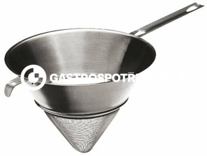 Cedník špičák v celonerezovém provedení s jemným sítem pro cedění látek.