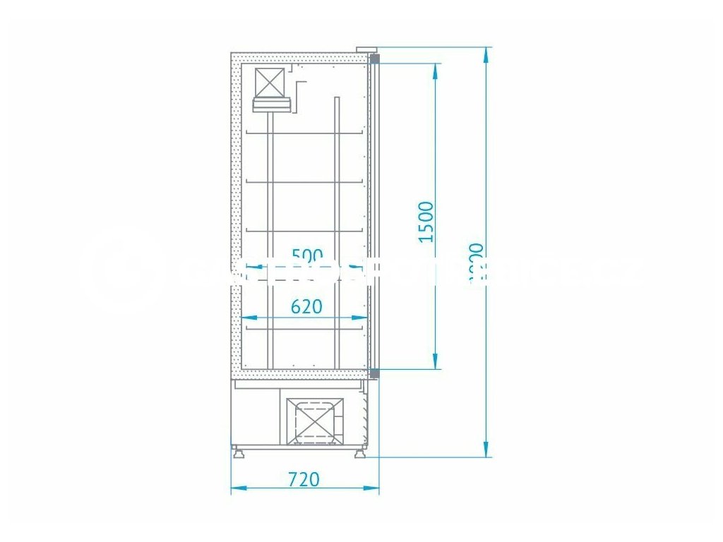 Prosklené chladící skříně - vhodné pro prezentaci, prodej, uskladnění a uchování potravin díky šetrnému způsobu chlazení (statické gravitační). Hygienické provedení - vnější opláštění (bílý lak), nerezové dno vnitřního prostoru, stěny jsou vyrobeny z AL plechu. Skříň je standardně vybavena 5ks polohovatelných roštů z plastem pokryté oceli. Automatické odtávání, chl. agregát Elektrolux, prosklené 1x křídlové dveře (pravé - na objednávku možno i levé), mechanické ovládání. Příplatkově volitelné příslušenství: Barevné provedení: šedá, modrá, červená ......... 1.250,- Kč Provedení s ventilátorem Zámek 1 dveří Zesílená hustá police Standardní police Nerezový vnitřní prostorDoplňkové parametry