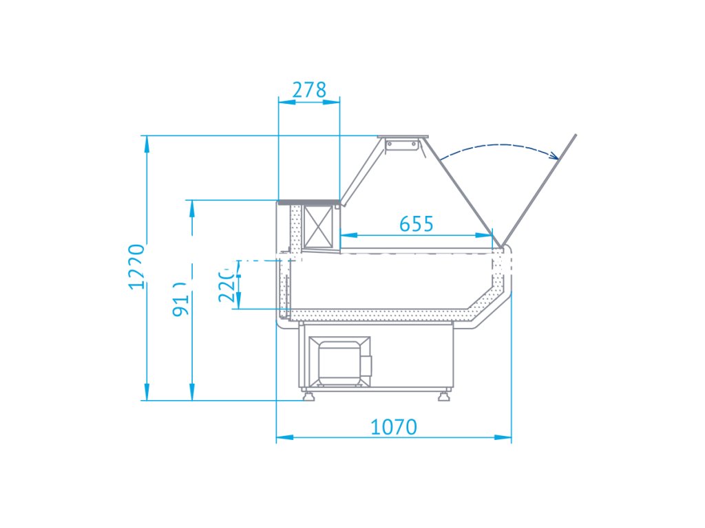 Chladící systém 3 klimatická třída, vnitřní jednotka napájená ekologickým chladivem R-290 a gravitační chlazení Elektronický regulátor teploty s displejem z obslužné strany a odvod kondenzátu do nádoby Tělo a vystavení: Hladké stříbrno-šedé boky z HIPS, vyplněné ekologickou polyuretanovou pěnou Barevné provedení na přední straně zařízení a karoserie lakovaná ve vybrané barvě ze vzoru RAPA Kryt nohou v RAL 7004 Signal Grey a vnitřní střecha z nerezové oceli s měkkými nárazníky Dělené, odnímatelné dno nerezového "zrcadlového" displeje Skladiště: Nerezová podlaha bez prahu a skladová dvířka ve stejné barvě jako korpus, s magnetickým těsněním Nevychlazený skladovací prostor, pod skladem, vedle agregátu Příplatkově: Oddělovací přepážka do výst.prostoru (PLEXI) ............... 790,-Kč Oddělovací přepážka do výst.prostoru (SKLO) .............. 1.200,-Kč Police do výstavního prostoru (SKLO-nechlazená) ........ 1.860,-Kč Zelená, modrá, červená, žlutá, oranžová, šedá, černá, tmavě šedá, béžová ....... 1.250,-KčDoplňkové parametry