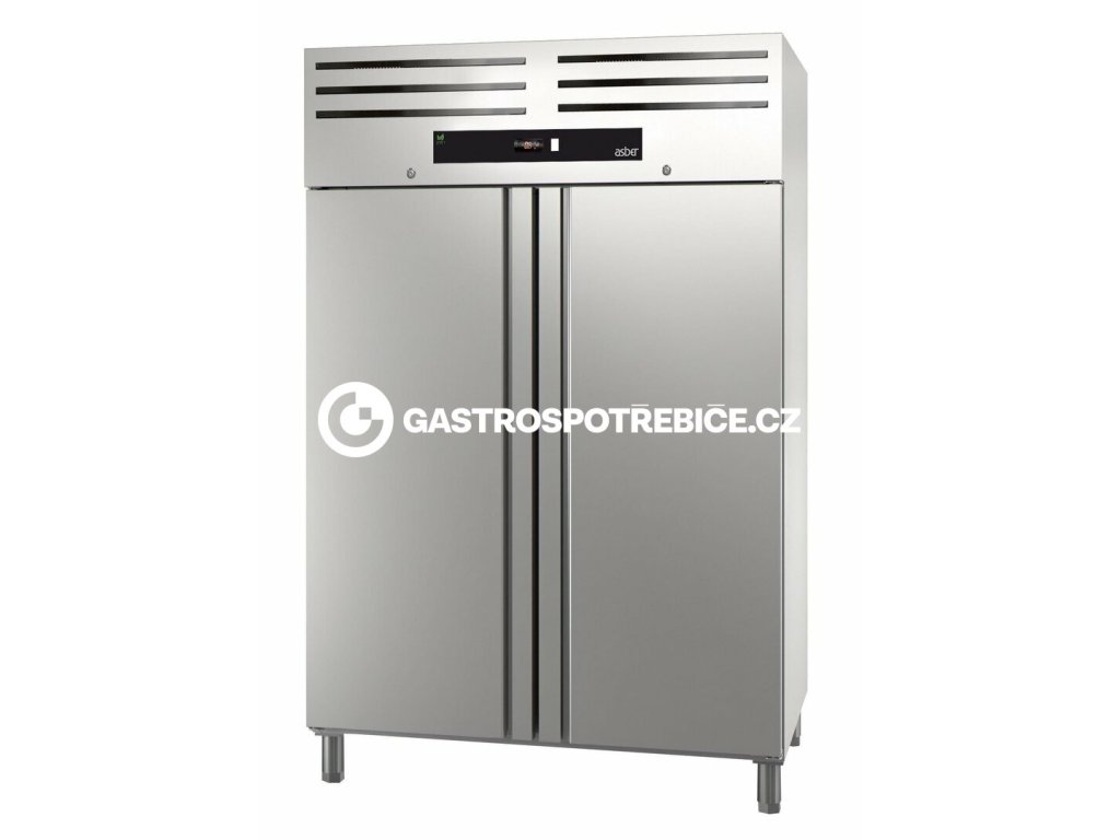 GREEN LINE R600a a R290a přírodní chladicí plyn (Uhlovodík). Přírodní plyny jsou mnohem energeticky účinnější než ostatní chladící kapaliny. Minimalizují energetickou spotřebu, pomáhájí při snižování skleníkového efektu a globálního oteplování. Skříně jsou vyrobené z vysoce kvalitní nerezové oceli v robustním designu s dokonalou povrchovou úpravou. Zesílené stěny o tloušťce 60 mm pro menší výkyv teplot. Polyuretanová izolace s vysokou hustotou (40 kg/m³) bez CFC, vstřikovaná pod vysokým tlakem. Robustní plné dveře z nerezové oceli s ergonomickou dokonale integrovanou rukojetí zajišťující praktické otevírání dveří (zabrání sběru prachu a nečistot). Závěsy dveří s automatickým návratem pro dokonalé uzavření, které minima- lizují teplotní ztráty. Dveře mají 120° pozici a zavírají se automaticky při úhlu menším než 90°. Dveřní závěsy jsou oboustranné, možná úprava na místě. Dveře v plném provedení jsou vybaveny dveřním zámkem. Intuitivní digitální ovládání umožňuje snadné a rychlé nastavení požadovaných teplotních parametrů. Podsvícený displej s tlačítkem start-stop. Na předním panelu je umístěn ”Ventilační rošt” pro kvalitní proudění vzduchu k chladícímu systému a zajištění tak jeho lepší efektivity. Bezúdržbový kondenzátor speciální konstrukce zabraňující vniknutí prachu a nečistot. Není potřeba čistit a snižuje spotřebu energie. Odvzdušňovací ventil s protikorozivní povrchovou úpravou. Objem: 1400 l Vnitřní / vnější: nerez Typ chlazení: ventilovanéDoplňkové parametry