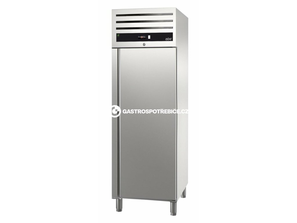GREEN LINE R600a a R290a přírodní chladicí plyn (Uhlovodík). Přírodní plyny jsou mnohem energeticky účinnější než ostatní chladící kapaliny. Minimalizují energetickou spotřebu, pomáhájí při snižování skleníkového efektu a globálního oteplování. Skříně jsou vyrobené z vysoce kvalitní nerezové oceli v robustním designu s dokonalou povrchovou úpravou. Zesílené stěny o tloušťce 60 mm pro menší výkyv teplot. Polyuretanová izolace s vysokou hustotou (40 kg/m³) bez CFC, vstřikovaná pod vysokým tlakem. Robustní plné dveře z nerezové oceli s ergonomickou dokonale integrovanou rukojetí zajišťující praktické otevírání dveří (zabrání sběru prachu a nečistot). Závěsy dveří s automatickým návratem pro dokonalé uzavření, které minimalizují teplotní ztráty. Dveře mají 120° pozici a zavírají se automaticky při úhlu menším než 90°. Dveřní závěsy (panty) je možno změnit (příplatkový set pantů pro levé otevírání). Dveře v plném provedení jsou vybaveny dveřním zámkem. Intuitivní digitální ovládání umožňuje snadné a rychlé nastavení požadovaných teplotních parametrů. Podsvícený displej s tlačítkem start-stop. Na předním panelu je umístěn ”Ventilační rošt” pro kvalitní proudění vzduchu k chladícímu systému a zajištění tak jeho lepší efektivity. Bezúdržbový kondenzátor speciální konstrukce zabraňující vniknutí prachu a nečistot. Není potřeba čistit a snižuje spotřebu energie. Odvzdušňovací ventil s protikorozivní povrchovou úpravou. Objem: 700 l Vnitřní / vnější: nerez Typ chlazení: ventilovanéDoplňkové parametry