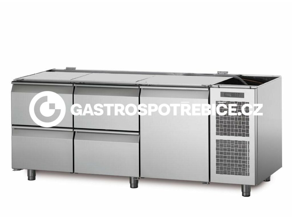 Unikátní systém rychlé výměny jednotky PLUG-IN pro snadnou, rychlou výměnu, opravu a připojení k elektronice řízení (výrazné snížení času a nákladu na servis). Tropikalizovaná kondenzační jednotka (do okolní teploty +43 °C) s optimálním prostorem pro chlazení agregátu. Výparník s antikorozním povlakem a účinkem, dvojitým vakuovým cyklem pro zvýšení účinnosti chladícího systému a výkonu. Pravidelný a kalibrovaný průtok vzduchu zajišťuje dokonalou rovnoměrnost nastavené teploty pro všechny police (mrazící i chladící modely). Systém Coldline pro rychlé, ale šetrné odtávání s minimálním tepelným výkyvem zabraňujícím poškození uložených potravin a výrazně snižujícím spotřebu energie. TS - model bez vrchní deskyDoplňkové parametry