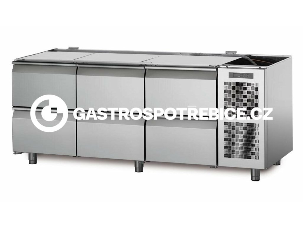 Unikátní systém rychlé výměny jednotky PLUG-IN pro snadnou, rychlou výměnu, opravu a připojení k elektronice řízení (výrazné snížení času a nákladu na servis). Tropikalizovaná kondenzační jednotka (do okolní teploty +43 °C) s optimálním prostorem pro chlazení agregátu. Výparník s antikorozním povlakem a účinkem, dvojitým vakuovým cyklem pro zvýšení účinnosti chladícího systému a výkonu. Pravidelný a kalibrovaný průtok vzduchu zajišťuje dokonalou rovnoměrnost nastavené teploty pro všechny police (mrazící i chladící modely). Systém Coldline pro rychlé, ale šetrné odtávání s minimálním tepelným výkyvem zabraňujícím poškození uložených potravin a výrazně snižujícím spotřebu energie. TS - model bez vrchní deskyDoplňkové parametry