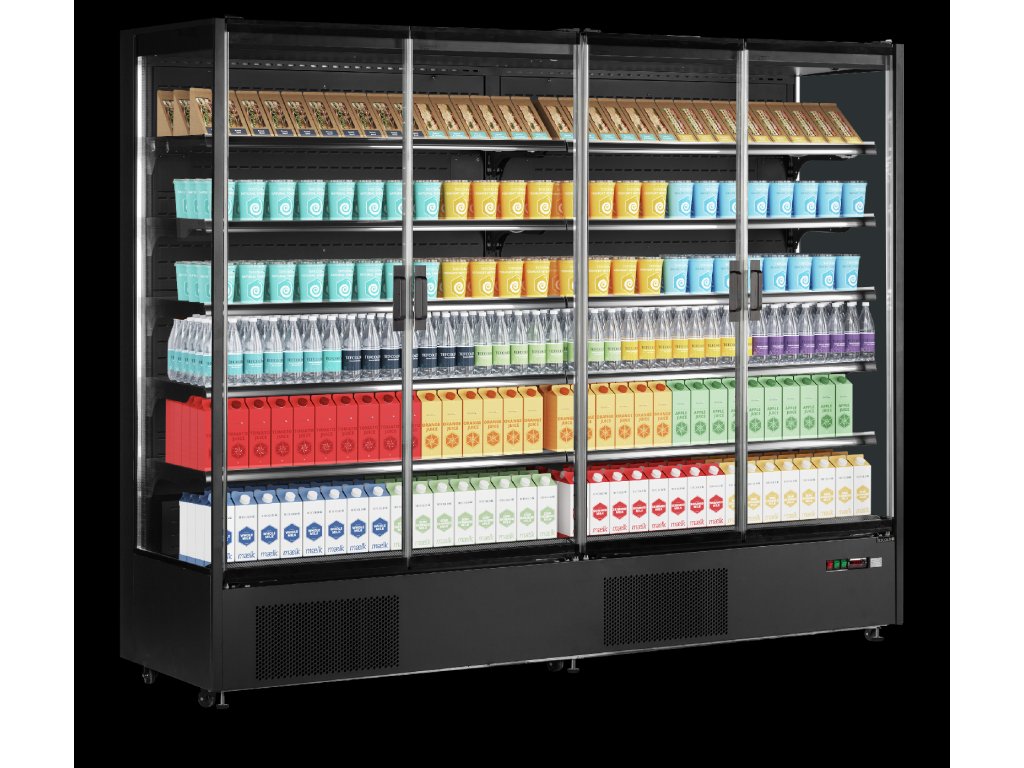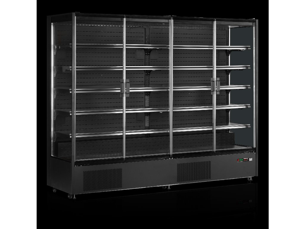 Řada přístěnných chladicích vitrín PC nabízí prostorné řešení chlazení s nízkou spotřebou energie. Dodává se se dvěma, třemi nebo čtyřmi bezrámovými prosklenými křídlovými dveřmi a také s prosklenými bočními stěnami pro optimální viditelnost výrobků. Prostor uvnitř vitríny je krásně nasvícen díky LED osvětlení v porní části a také pod každou policí. Vitríny PC jsou skvělou volbou pro supermarkety a obchody se smíšeným zbožím. bezrámové prosklené dveře pro skvělou viditelnost výrobků|nízká spotřeba energie|černý interiér a exteriér|nastavitelné police se sklopnou funkcí|LED osvětlení pod každou policí|ventilované chlazení pro rychlé snížení teploty a zajištění rovnoměrné teploty|digitální termostat a teplotní displej|boční stěny standardně prosklené|transparentní cenovkové lišty o výšce 33 mm |kolečka a nastavitelné nožičkyDoplňkové parametry