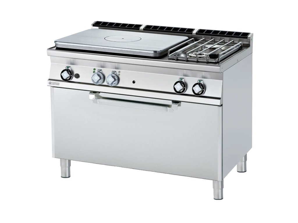 RM - TPF2-712GPE Sporák tálový kombinovaný se statickou elektrickou troubou 3x GN 1/1 - 3x hořák + záruka 3 roky
