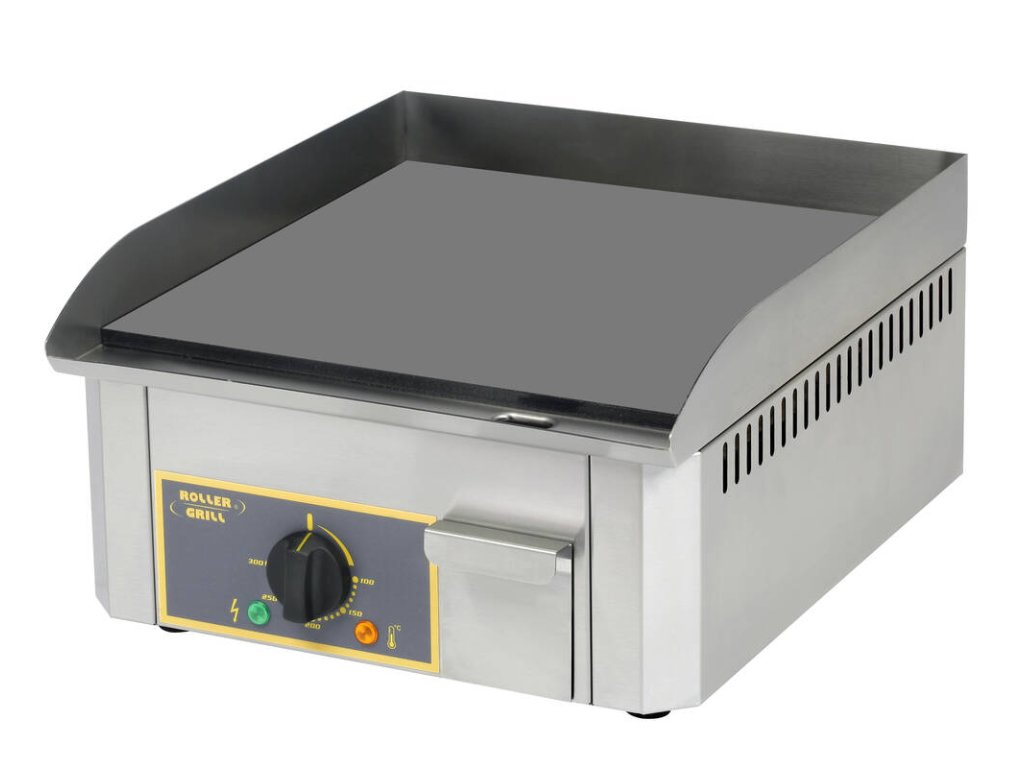 Elektrická grilovací deska PSR 400 E od francouzského výrobce ROLLER GRILL. ocelová pracovní grilovací plocha hladká síla grilovací desky 10 mm vyjímatelná zásuvka na nečistoty na přední straně žlábek pro zachytávání mastnoty rovnoměrné rozložení tepla po celé ploše desky – 1 nezávisle ovládané topné těleso termostat s regulovatelným nastavením teploty 0 – 300 °C kontrolka zapnutí grilovací desky nerezová konstrukce a zesílená izolaceDoplňkové parametry