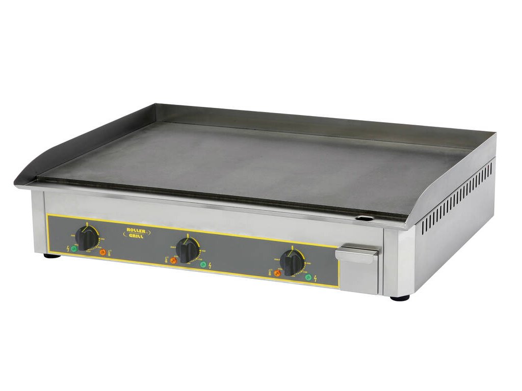 Elektrická grilovací deska PSR 900 E od francouzského výrobce ROLLER GRILL. ocelová pracovní grilovací plocha hladká síla grilovací desky 10 mm vyjímatelná zásuvka na nečistoty na přední straně žlábek pro zachytávání mastnot rovnoměrné rozložení tepla po celé ploše desky – 1 nezávisle ovládané topné těleso termostat s regulovatelným nastavením teploty 0 – 300 °C kontrolka zapnutí grilovací desky nerezová konstrukce a zesílená izolaceDoplňkové parametry