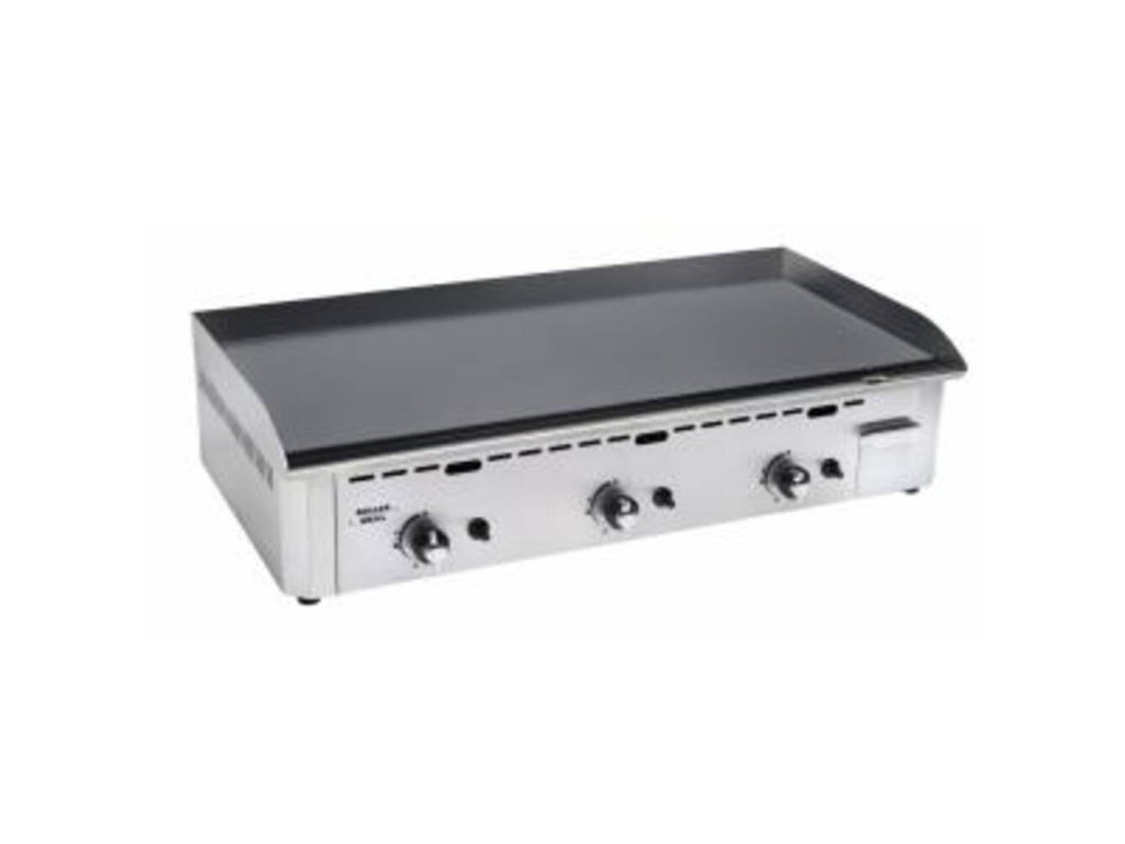 Plynová grilovací deska PSR 900 GE od francouzského výrobce ROLLER GRILL. smaltovaná pracovní grilovací plocha hladká síla grilovací desky 10 mm vyjímatelná zásuvka na nečistoty na přední straně žlábek pro zachytávání mastnoty piezzo zapalování termopojistka ovládací regulační dvoupolohový knoflík s pozicí úsporného režimu nerezová konstrukce a zesílená izolace dodáváno s tryskami na propan-butan a navíc s tryskami na zemní plynDoplňkové parametry