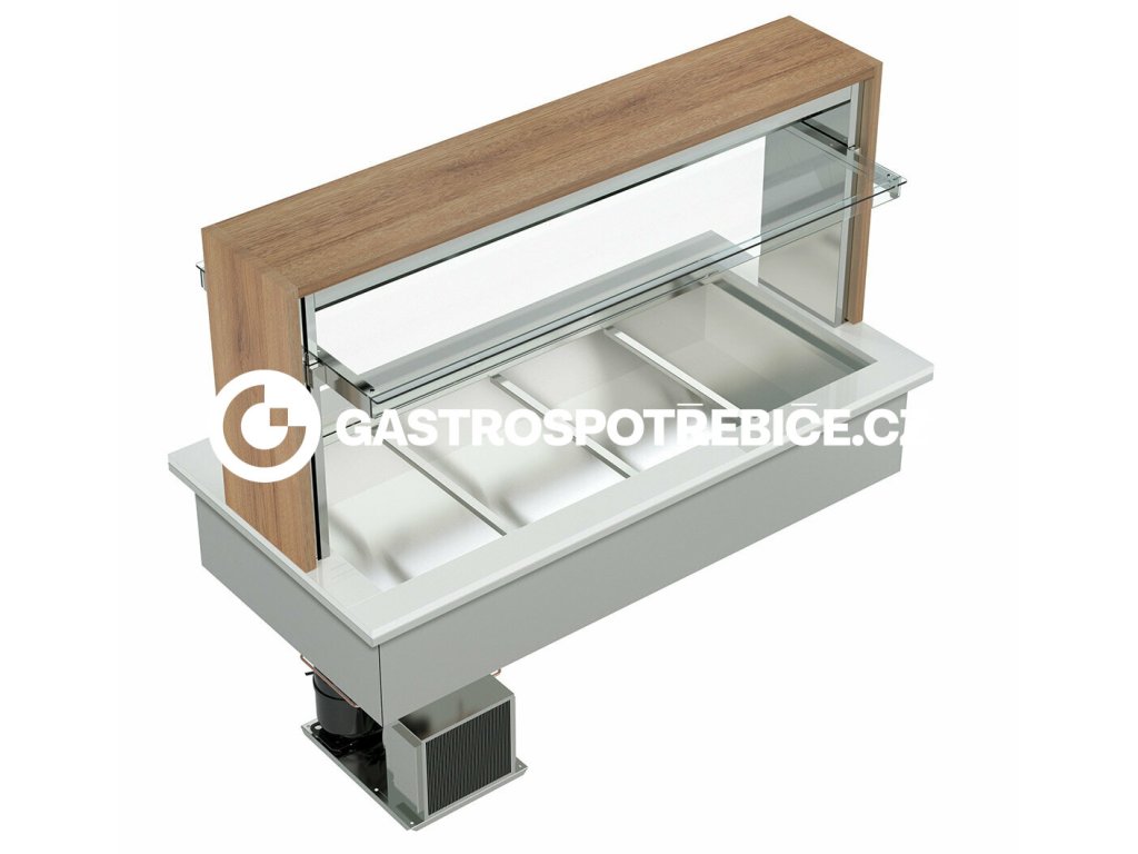 Nová linie s inovativními tvary. Precizní zpracování, s jedinečnou povrchovou úpravou podtrhující "modulové” provedení pláště doplněné zapuštěným LED osvětlením v rampě celokovové konstrukce. Doplněny o mechanický snadno polohovatelný hygienický zákryt. Funkčnost, estetika a elegantní detaily navozují příjemné emoce, které vytvářejí dobrý zážitek při rychlém občerstvení. Pulty linie Doge Isola jsou vyráběny ve variantě prostorové s možností doplnění o neutrální moduly. Dřevěná konstrukce. Vrchní deska z vysoce kvalitní křemičité pryskyřice. Nádoby a desky z nerezové oceli AISI 304 v provedení s chlazením. Tvrzené křišťálové sklo. Digitální ovládání s regulací teploty v nádobě nebo na desce. Otočná kolečka pro snadnou manipulaci. Systém zvedání a spouštění víka jedním stiskem. Dostupné provedení pultů Light Dark Ash white Rough finishDoplňkové parametry