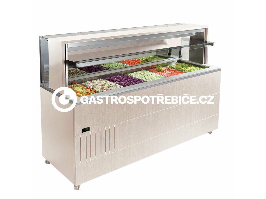 Nová linie s inovativními tvary. Precizní zpracování, s jedinečnou povrchovou úpravou podtrhující "modulové” provedení pláště s pevnou nadstavbou doplněnou o LED osvětlení v rampě celokovové konstrukce. Funkčnost, estetika a elegantní detaily navozují příjemné emoce, které vytvářejí dobrý zážitek při rychlém občerstvení. Pulty linie Doge Servito jsou vyráběny ve variantě prostorové s možností doplnění o neutrální moduly. Dřevěná konstrukce. Vrchní deska z vysoce kvalitní křemičité pryskyřice. Nádoby a desky z nerezové oceli AISI 304 v provedení s chlazením. Pevná nadstavba. Tvrzené křišťálové sklo. Digitální ovládání s regulací teploty v nádobě nebo na desce. Otočná kolečka pro snadnou manipulaci. Dostupné provedení pultů Light Dark Ash white Rough finishDoplňkové parametry