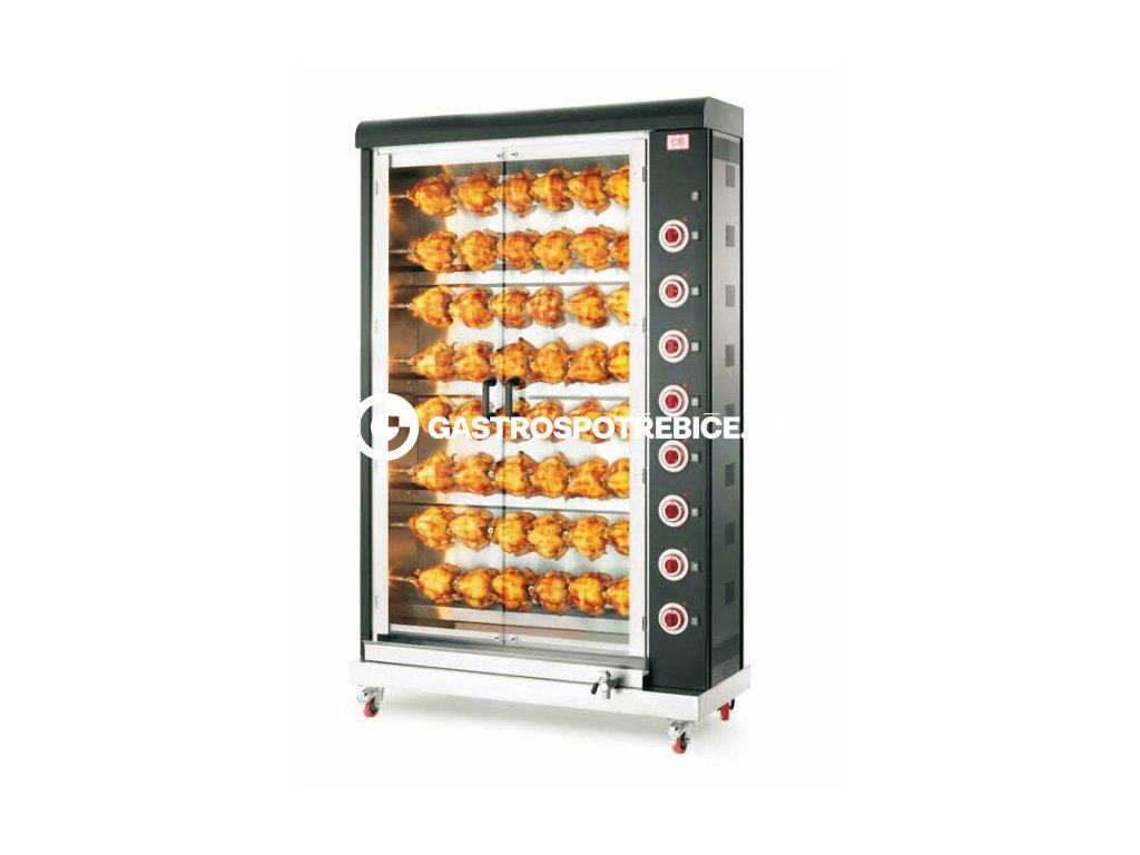Elektrický gril na kuřata E-48P/B - černý lak: Dokonalý pomocník pro restaurace a gastronomické provozy. S nerezovým provedením a elegantním černým lakem je elektrický gril E-48P/B nejen špičkovým kuchyňským zařízením, ale i designovým prvkem, který zaujme každého. Hlavní vlastnosti: Výkonnost a precizní ovládání: Tento gril je vybaven osmi nezávisle ovladatelnými jehlami, což umožňuje připravit až 48 kuřat současně. Díky příkonu 24kW a napájení 400V dosáhnete rychlého výsledků. Elegantní design: Černý lak a nerezové provedení dodávají grilu moderní vzhled, který se snadno zapadne do jakéhokoli prostředí. Kontrola a bezpečnost: Gril má prosklená přední dvířka, která vám umožní sledovat vaše kuřata během grilování. Vnitřní osvětlení zajistí dokonalou viditelnost i za špatných světelných podmínek. Spodní odkapová miska a výpustný kohout usnadní čištění a udržování grilu. Rozměry a možnosti: Celkové rozměry 1270x500x2030mm a hmotnost 170kg zajišťují, že tento gril poskytuje dostatek prostoru pro větší grilovací akce. Možnost dokoupit náhradní jehly, koše, spony a další příslušenství vám umožní přizpůsobit tento gril vašim potřebám. nerezové provedení / černý lak ovládání jednotlivých jehel prosklená přední dvířka vnitřní osvětlení spodní odkapová miska výpustný kohout Celkové rozměry (šxhxv): 1270x500x2030mm Hmotnost: 170kg Příkon: 24kW Napájení: 400V Možno dodat náhradní jehly, koše, spony atd. Materiál: černý lak Počet jehel: 8 Vsádka kuřat: až 48Doplňkové parametry
