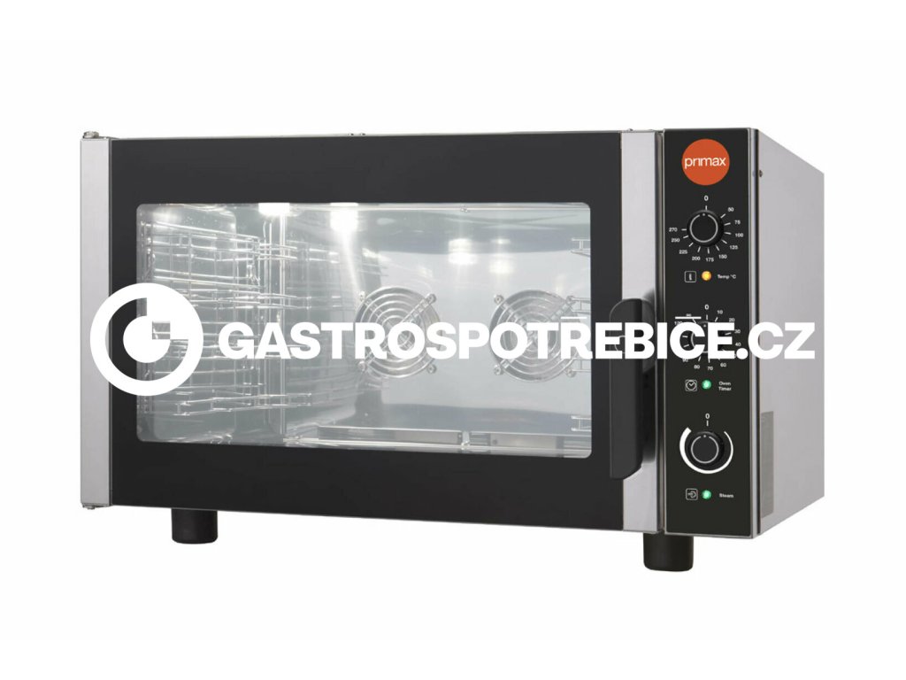 Nová řada elektrických konvekčních pekařských a cukrářských pecí PRIMAX EASY VALUE je navržena s ohledem na maximálně snadné ovládání (elektromechanické ovládání) a uživatelské prostředí, jednoduché pečící procesy při zachování požadovaných výsledků a permanentní kvality pečení. Pece PRIMAX jsou výkonné a zaručují optimální rovnoměrnost pečení v každém prostředí a při jakémkoli množství vloženého produktu. Pekařské a cukrářské pece PRIMAX EASY VALUE se snadným elektromechanickým ovládácím panelem (dokonalé spojení jednoduchosti a výkonu) jsou připraveny Vám poskytnout bez zbytečností vše to, co od profesionání pece požadujete a jsou ideální pro přípravu pečiva a mražených produktů v supermarketech a obchodech se smíšeným zbožím. Pekařské a cukrářské pece předního Italského výrobce firmy Primax jsou vyrobeny v Itálii z evropských komponentů a kvalitních nerezových materiálů, sestaveny pod přísnou kontrolou v moderním funkčním designu. Pece EASY VALUE jsou ideálním řešením pro profesionální provozy k přípravě čerstvého, nebo zmraženého pečiva a dalších produktů. Celonerezové provedení AISI 430, izolovaná komora (keramická vlákna), nerezový varný prostor (nerez AISI 304) se zaoblenými hranami a lisovaným dnem. Snadné manuální ovládání s nastavení teploty 50°- 270°C, nastavením času 0 - 120 min. a trvalý chod (nekonečno). Kontrolky jednotlivých ovladačů signalizují chod a připravenost dané funkce. Model je v provedení se snadným "regulovatelným" zlhčováním (umožňuje snadné nastavení množství páry/vlhkosti v komoře) pomocí otočného ovladače. Optimální prodění vzduchu a teplotu zajišťují dva výkonné "reverzní" nerezové ventilátory (2x 240W) a výkonná nerezová tělesa Incoloy 800 (6kW). Komora je vybavena vnitřním osvětlením a snadno vyjímatelným odolným těsněním. Odvětrávaná křídlová dvířka (levé otevírání) s dvojitým sklem a bezpečnostní ergonomickou klikou. Nerez vyjímatelné zásuvy s optimální roztečí 75 mm. Kapacita: 4 plechy EN 600x400mm (případně GN1/1) Celonerezové provedení AISI 430 nerezový varný prostor AISI 304 se zaoblenými hranami izolovaná varná komora (keramická vlákna) snadné elektromechanické ovládání nastavení teploty 0-270°C nastavení času 0-120min + nekonečno regulátor pro nastavení zvlhčování do komory výkonná nerezová topná tělesa Incoloy 800 výkonné nerezové ventilátory s reverzním chodem vnitřní halogenové osvětlení snadno vyjímatelné těsnění varné komory odvětrávaná křídlová dvířka s dvojitým sklem nerez vyjímatelné zásuvy s roztečí 75mm model umožňující připojení na vodu a odpad přípojka na vodu (3/4" / požadovaný tlak 1,5-2,5 bar a trvdost 4-12°F) komora vybavena nerezovou odpadní trubkou (Ø 40mm odvod vody z komory). Kapacita 4x 600x400mm (GN1/1) Ventilovaná (2 reverzní ventilátory) Řízené zvlhčování do komory Příkon /Napětí: 6,5kW / 400VDoplňkové parametry