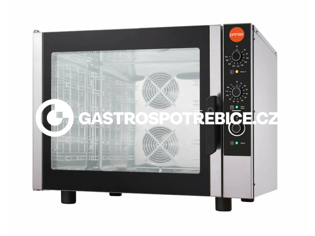 Nová řada elektrických konvekčních pekařských a cukrářských pecí PRIMAX EASY VALUE je navržena s ohledem na maximálně snadné ovládání (elektromechanické ovládání) a uživatelské prostředí, jednoduché pečící procesy při zachování požadovaných výsledků a permanentní kvality pečení. Pece PRIMAX jsou výkonné a zaručují optimální rovnoměrnost pečení v každém prostředí a při jakémkoli množství vloženého produktu. Pekařské a cukrářské pece PRIMAX EASY VALUE se snadným elektromechanickým ovládácím panelem (dokonalé spojení jednoduchosti a výkonu) jsou připraveny Vám poskytnout bez zbytečností vše to, co od profesionání pece požadujete a jsou ideální pro přípravu pečiva a mražených produktů v supermarketech a obchodech se smíšeným zbožím. Pekařské a cukrářské pece předního Italského výrobce firmy Primax jsou vyrobeny v Itálii z evropských komponentů a kvalitních nerezových materiálů, sestaveny pod přísnou kontrolou v moderním funkčním designu. Pece EASY VALUE jsou ideálním řešením pro profesionální provozy k přípravě čerstvého, nebo zmraženého pečiva a dalších produktů. Celonerezové provedení AISI 430, izolovaná komora (keramická vlákna), nerezový varný prostor (nerez AISI 304) se zaoblenými hranami a lisovaným dnem. Snadné manuální ovládání s nastavení teploty 50°- 270°C, nastavením času 0 - 120 min. a trvalý chod (nekonečno). Kontrolky jednotlivých ovladačů signalizují chod a připravenost dané funkce. Model je v provedení se snadným "regulovatelným" zlhčováním (umožňuje snadné nastavení množství páry/vlhkosti v komoře) pomocí otočného ovladače. Optimální prodění vzduchu a teplotu zajišťují dva výkonné "reverzní" nerezové ventilátory (2x 240W) a výkonná nerezová tělesa Incoloy 800 (7,4kW). Komora je vybavena vnitřním osvětlením a snadno vyjímatelným odolným těsněním. Odvětrávaná křídlová dvířka (levé otevírání) s dvojitým sklem a bezpečnostní ergonomickou klikou. Nerez vyjímatelné zásuvy s optimální roztečí 75 mm. Kapacita: 6 plechů EN 600x400mm (případně GN1/1) Celonerezové provedení AISI 430 nerezový varný prostor AISI 304 se zaoblenými hranami izolovaná varná komora (keramická vlákna) snadné elektromechanické ovládání nastavení teploty 0-270°C nastavení času 0-120min + nekonečno regulátor pro nastavení zvlhčování do komory výkonná nerezová topná tělesa Incoloy 800 výkonné nerezové ventilátory s reverzním chodem vnitřní halogenové osvětlení snadno vyjímatelné těsnění varné komory odvětrávaná křídlová dvířka s dvojitým sklem nerez vyjímatelné zásuvy s roztečí 75mm model umožňující připojení na vodu a odpad přípojka na vodu (3/4" / požadovaný tlak 1,5-2,5 bar a trvdost 4-12°F) komora vybavena nerezovou odpadní trubkou (Ø 40mm odvod vody z komory). Kapacita 6x 600x400mm (GN1/1) Ventilovaná (2 reverzní ventilátory) Řízené zvlhčování do komory Příkon /Napětí: 7,9kW / 400VDoplňkové parametry