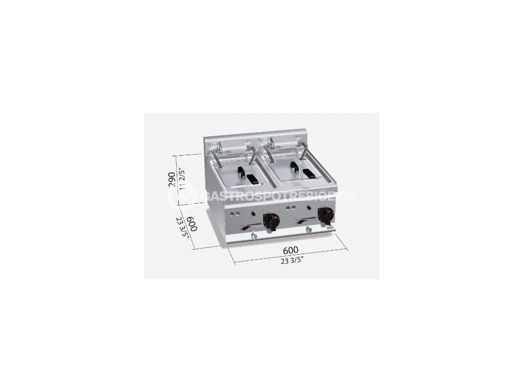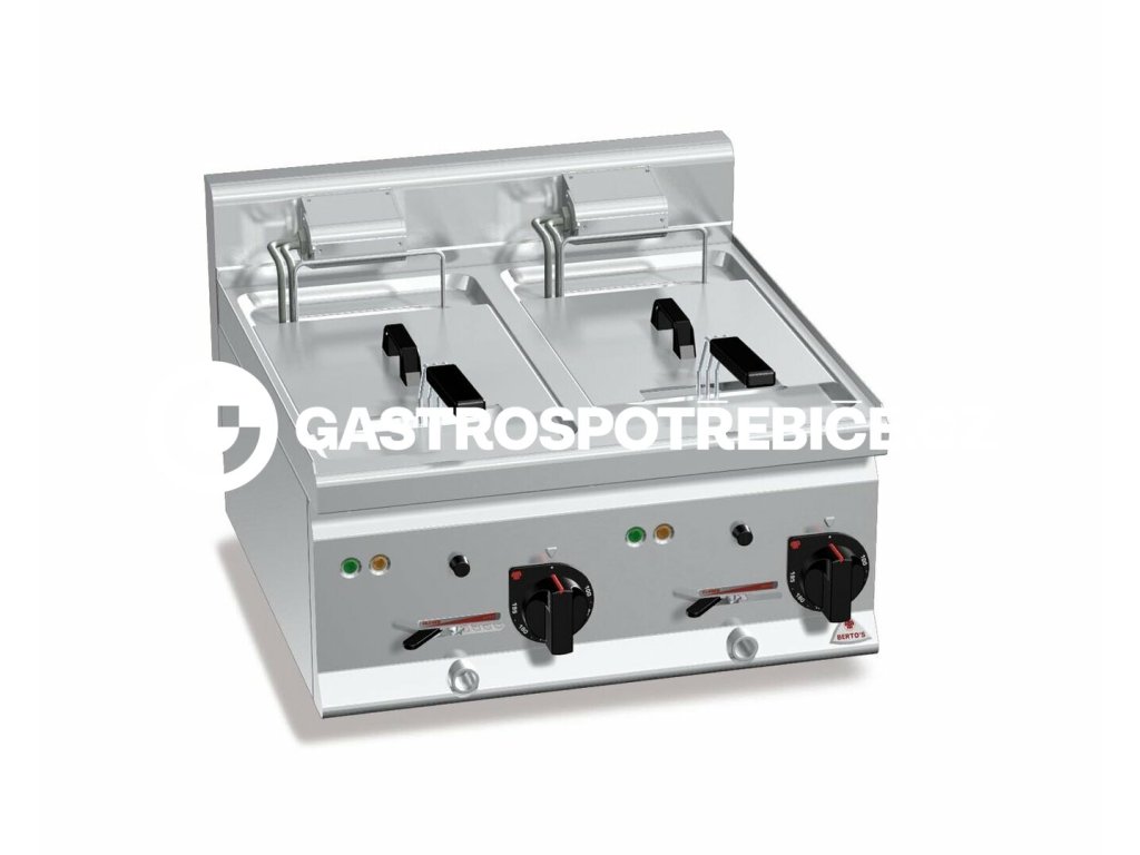 Dvě vany s nezávislým ovládáním pro optimální regulaci teploty. Topné těleso umístěné přímo ve vaně. Snažší čištění umožňuje odklopění topného tělesa směrem nahoru. Bezpečnostní zařízení pro přerušení napájení při odklopění spirály nahoru. Kontrola teploty termostatem od 80 °C až 190 °C s přesnějším zjišťování teploty díky senzorům umístěným ve vaně. Světelná signalizace ovládání s indikátorem teploty. Elektrické a plynové fritézy jsou vybaveny mechanickým ovládáním s přesným řízením teploty. Technologie přímého ohřevu s vysokou účinností hořáků a topných spirál zaručuje velmi rychlé nahřátí a rozvod tepla velkým povrchem zabraňujícím přepalování oleje. Nádrž se zaoblenými hranami a úchytem pro zavěšení koše poskytuje provozovateli maximum hygieny a pohodlí spojeného s bezpečím při práci. Výklopná elektrická topná tělesa umožňují snadnou údržbu a čistění vany. Provedení: elektrika Objem vany: 2x 10 l Celkový příkon: 18 kWDoplňkové parametry