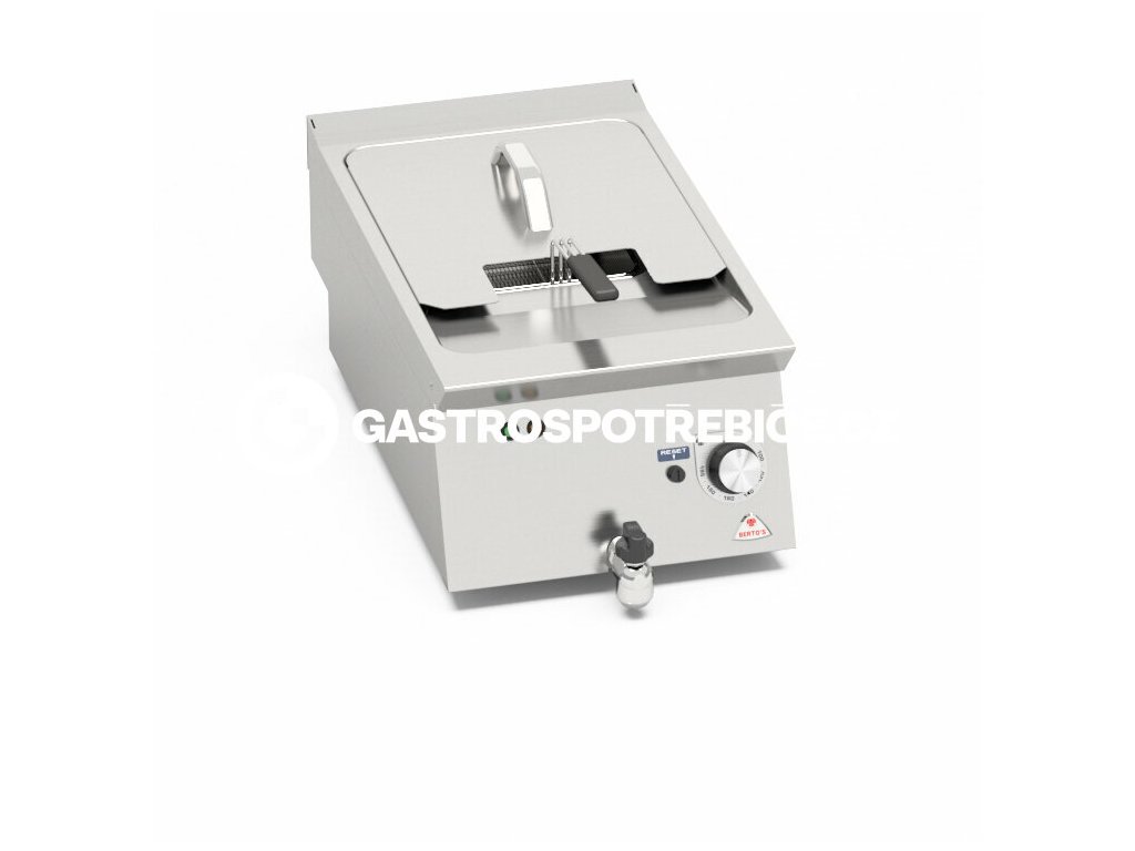 Ovládání teploty od 110°C do 190°C termostatickým ventilem s přesným zjišťováním teploty díky senzorům ve vaně. Bezpečnostní termostat s manuálním restartem. Vypouštění kulovým kohoutem s tepelně odolným držadlem umístěno bezpečně do podstavce. Pracovní deska z kvalitní nerez oceli AISI 304 tloušťka 2 mm (20/10), přední a boční opláštění z nerezové oceli AISI 304. Příkon: 9 kW Počet van: 1 Hmotnost: 26 kg Provedení 1 košDoplňkové parametry