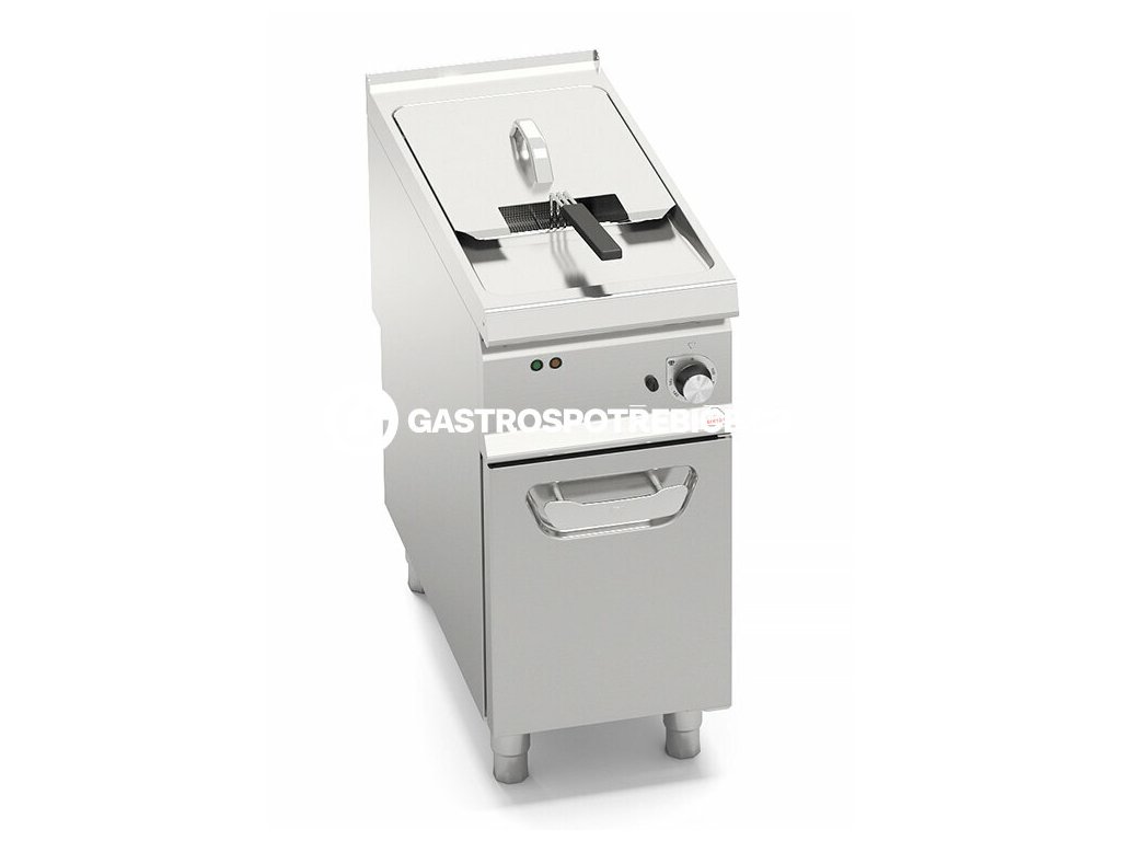 Topné těleso umístěné přímo ve vaně. Snazší čištění umožňuje odklopení topného tělesa směrem nahoru. Bezpečnostní zařízení pro přerušení napájení při odklopení spirály nahoru. Kontrola teploty termostatem od 80 °C až 190 °C s přesnějším zjišťování teploty díky senzorům umístěným ve vaně. Světelná signalizace ovládání s indikátorem teploty. Pracovní plocha z nerez oceli AISI 304 tloušťka 20/10, přední a boční panely z nerezové oceli AISI 304. Vana nerez ocel AISI 304 se zaoblenými hranami a studenou zónou pod topným tělesem pro slévání zbytků. Na vrcholu s odsazenou mírně nakloněnou hranou navazující na koš a odpadním otvorem pro odtok přebytečného oleje do sběrné nádoby. Vypouštění kohoutem s tepelně odolným držadlem. Na vrchu se zaoblenou hranou pro zavěšení koše při skapávání oleje. Hmotnost: 46 kg Příkon: 18 kW Obsah: 18 l Počet košů: 2 Počet van: 1Doplňkové parametry