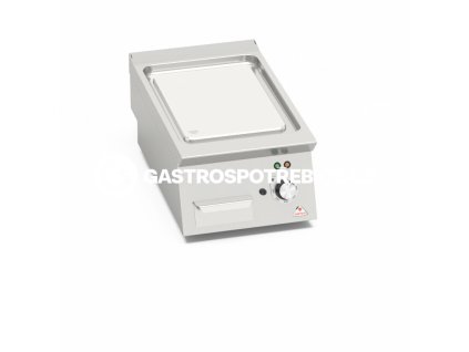 Zesílená grilovací deska s hladkým (rýhovaným) povrchem z oceli a zvýšenými postranními lemy. Topné těleso je umístěno pod grilovací plotnou. Regulační stupně umožňují nastavit...