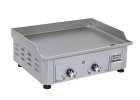 Zesílená grilovací deska s hladkým (rýhovaným) povrchem z oceli a zvýšenými postranními lemy. Topné těleso je umístěno pod grilovací plotnou. Dvě nezávislé zóny,regulační stupně...