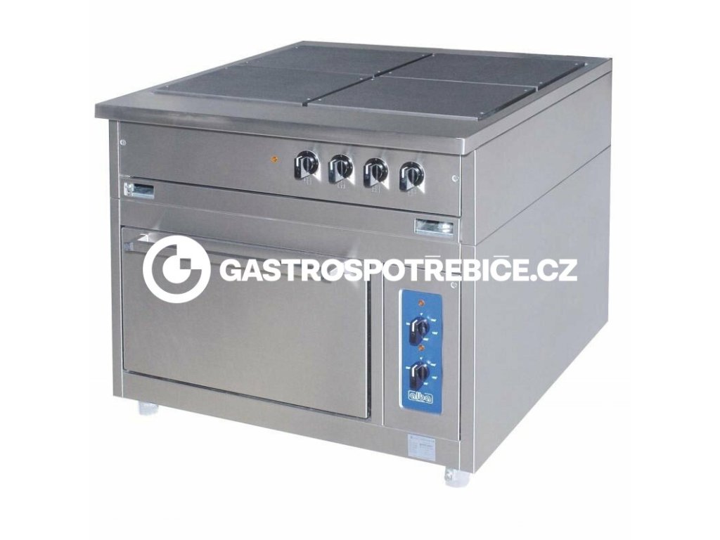 Elektrický sporák se skládá z horní vařidlové části a podstavce, který je opatřen čtyřmi seřizovatelnými nožičkami. Vařidlovou část tvoří horní rám, spolu s bočními a zadní stěnou, jež jsou z nerezavějícího plechu a dna. V horním rámu jsou uloženy čtyři elektrické litinové plotny, ovládané zpředu čtyřmi regulačními přepínači, které jsou umístěny společně se signálkou zapnutého stavu na panelu. Z čela pod ovládacím panelem je umístěna výsuvná odkapní mísa pro přeteklé vařivo. V podstavci spotřebiče je umístěna elektrická trouba pro plechy GN 2/1, která je vybavena horním a dolním topným tělesem se samostatnou regulací teploty a signalizací zapnutého stavu.Doplňkové parametry