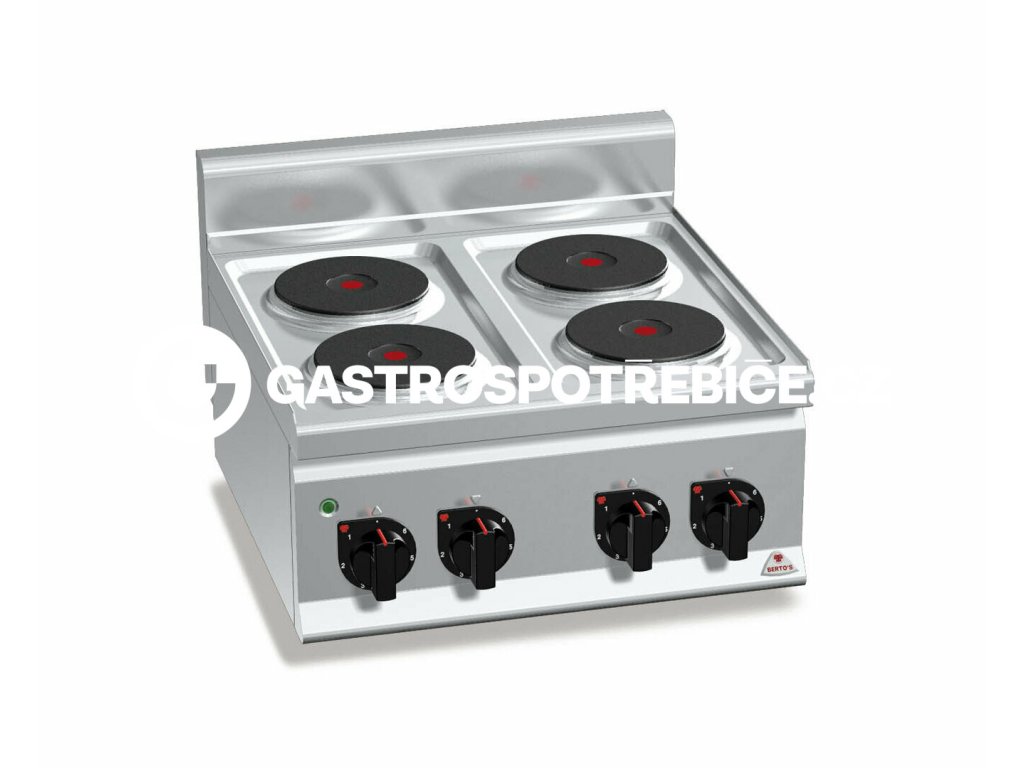 Elektrické sporáky jsou vybaveny kulatými litinovými plotnami Ø 180 mm a výkonem 2 kW. Teplota je regulována nezávisle nastavitelnými spínači. Elektrická konvekční trouba vhodná pro GN 1/1 s kvalitním těsněním dveří. Provedení: elektrika Počet ploten: 4 Celkový příkon: 8 kWDoplňkové parametry