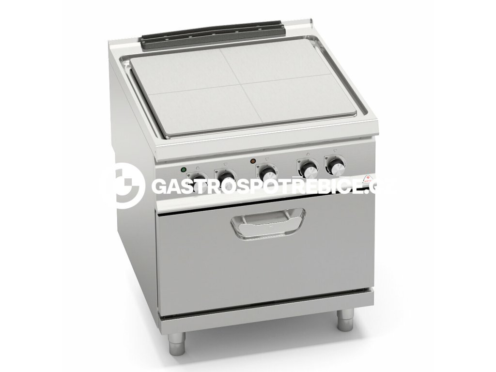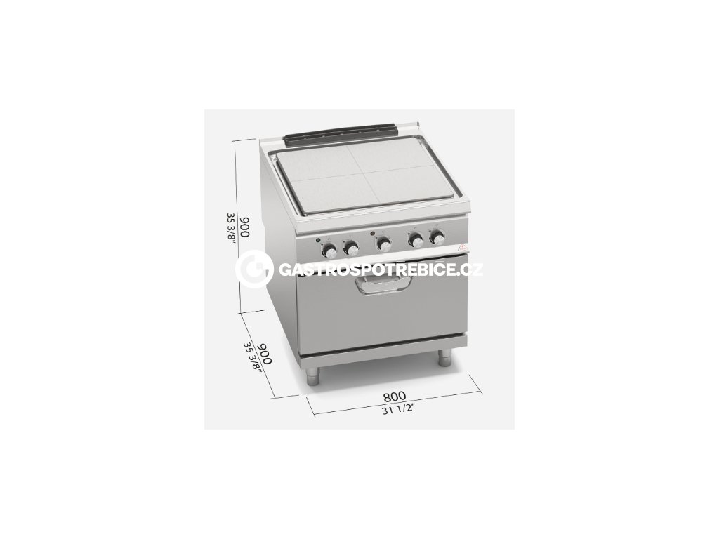 Elektrický tálový sporák s topnými tělesy o výkonu 3,5kW rovnoměrně rozloženými do čtyř zón. Nedělená varná plocha. Plynulá regulace jednotlivých zón s kontrolkou chodu. Kompaktní provedení s výkonnou elektrickou horkovzdušnou troubou GN 2/1.Doplňkové parametry