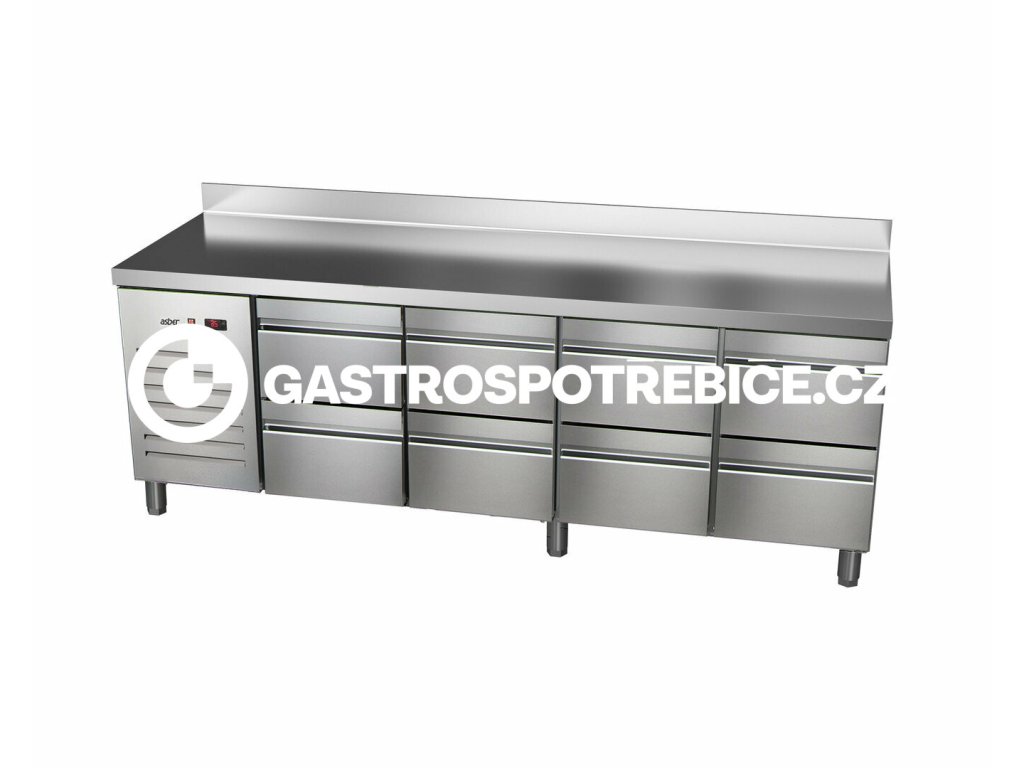 Zesílená konstrukce Konstrukce o šířce 700 mm, speciálně vyrobená pro intenzivní profesionální aplikace, vyznačuje se velmi robustním designem s vysoce kvalitními materiály a perfektní povrchovou úpravou. Pracovní desky Robustní pracovní desky z nerezové oceli o tloušťce 50 mm se 100 mm vysokým zpětným dostřikem jako standardní volitelná výbava, která zabraňuje rozlití za pultem. Přizpůsobení je k dispozici v různých konfiguracích (bez stříkání, bez horní části, s dřezem a materiály (nerezová ocel, žula), aby se přizpůsobily jakýmkoli profesionálním kuchyňským potřebám. Izolace - tloušťka 50 mm Zaručuje výjimečnou, dlouhodobou izolaci a úsporu energie na každém pultu díky polyuretanové izolaci s vysokou hustotou (40 kg/m³) bez freonů, vstřikované pod vysokou tlak. Dveře s integrovaným madlem a odnímatelné těsnění Ergonomická, po celé délce, robustní, dokonale integrovaná rukojeť zajišťuje praktické otevírání dvířek a zabraňuje hromadění prachu a nečistot extrémně snadné čištění. Odnímatelné vytahovací/vtlačovací magnetické těsnění dveří pro zachování maximální hygieny a zachování izolačních vlastností. Výškově nastavitelná nerezová ocel nohy Smontované nohy z nerezové oceli jsou standardně dodávány. Výšku nožiček lze individuálně nastavit (125 mm - 200 mm), aby bylo možné pohodlně čistit pod spotřebičem. Volitelně jsou k dispozici kolečka. Teleskopický posuv z nerezové oceli šuplíky Zásuvky z nerezové oceli s děrovanými spodními deskami a teleskopickými posuvnými vodítky, které lze zcela zasunout pro úsporu pracovní plochy. Odnímatelné vodicí lišty, robustní drátěné mřížky Odnímatelné vodicí lišty umožňují pohodlnější čištění bez použití dalších nástrojů. Umístění a nastavení drátěných mřížek v požadované výšce je možné bez použití přídavných kolejnic. Drátěné mřížky potažené epoxidem pro zlepšení ochrany umožňují skladování různých typů obalů a mají maximální nosnost až 40 kg. Intuitivní digitální ovládání Teplotní parametry se nastavují snadno a rychle, což umožňuje nejvyšší kvalitu a nejlepší uchování potravin. Vysoce účinné komponenty Nízkoenergetické kompresory, velkoplošné výparníky a vysoce výkonné elektronické ventilátory, které minimalizují teplotní zisky a snižují spotřebu energie. Chlazená vestavěná přísada kontejnery Optimální cirkulace vzduchu ve vnitřním těle zajišťuje, že gastronorm pultové nádoby na přísady jsou nepřetržitě chlazeny, takže jsou ideální jako pracovní stanice pro přípravu salátů, sendvičů a pizz. Automatické odpařování odmrazování voda Horký plyn vycházející z kompresoru se používá k automatickému odpařování rozmrazené vody namísto pomocí topných těles, čímž se dosahuje ještě nižší spotřeby energie. Díky tomu potraviny nepodléhají škodlivým teplotním výkyvům. Dálkové čítače Široká škála modelů bez kondenzační jednotky pro minimalizaci emisí tepla a hluku zaručuje bezpečnější pracovní prostředí v profesionálních kuchyních.Doplňkové parametry
