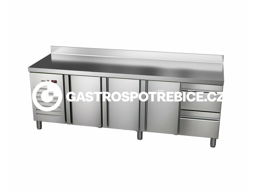 Zesílená konstrukce Konstrukce o šířce 700 mm, speciálně vyrobená pro intenzivní profesionální aplikace, vyznačuje se velmi robustním designem s vysoce kvalitními materiály a perfektní povrchovou úpravou. Pracovní desky Robustní pracovní desky z nerezové oceli o tloušťce 50 mm se 100 mm vysokým zpětným dostřikem jako standardní volitelná výbava, která zabraňuje rozlití za pultem. Přizpůsobení je k dispozici v různých konfiguracích (bez stříkání, bez horní části, s dřezem a materiály (nerezová ocel, žula), aby se přizpůsobily jakýmkoli profesionálním kuchyňským potřebám. Izolace - tloušťka 50 mm Zaručuje výjimečnou, dlouhodobou izolaci a úsporu energie na každém pultu díky polyuretanové izolaci s vysokou hustotou (40 kg/m³) bez freonů, vstřikované pod vysokou tlak. Dveře s integrovaným madlem a odnímatelné těsnění Ergonomická, po celé délce, robustní, dokonale integrovaná rukojeť zajišťuje praktické otevírání dvířek a zabraňuje hromadění prachu a nečistot extrémně snadné čištění. Odnímatelné vytahovací/vtlačovací magnetické těsnění dveří pro zachování maximální hygieny a zachování izolačních vlastností. Výškově nastavitelná nerezová ocel nohy Smontované nohy z nerezové oceli jsou standardně dodávány. Výšku nožiček lze individuálně nastavit (125 mm - 200 mm), aby bylo možné pohodlně čistit pod spotřebičem. Volitelně jsou k dispozici kolečka. Teleskopický posuv z nerezové oceli šuplíky Zásuvky z nerezové oceli s děrovanými spodními deskami a teleskopickými posuvnými vodítky, které lze zcela zasunout pro úsporu pracovní plochy. Odnímatelné vodicí lišty, robustní drátěné mřížky Odnímatelné vodicí lišty umožňují pohodlnější čištění bez použití dalších nástrojů. Umístění a nastavení drátěných mřížek v požadované výšce je možné bez použití přídavných kolejnic. Drátěné mřížky potažené epoxidem pro zlepšení ochrany umožňují skladování různých typů obalů a mají maximální nosnost až 40 kg. Intuitivní digitální ovládání Teplotní parametry se nastavují snadno a rychle, což umožňuje nejvyšší kvalitu a nejlepší uchování potravin. Vysoce účinné komponenty Nízkoenergetické kompresory, velkoplošné výparníky a vysoce výkonné elektronické ventilátory, které minimalizují teplotní zisky a snižují spotřebu energie. Chlazená vestavěná přísada kontejnery Optimální cirkulace vzduchu ve vnitřním těle zajišťuje, že gastronorm pultové nádoby na přísady jsou nepřetržitě chlazeny, takže jsou ideální jako pracovní stanice pro přípravu salátů, sendvičů a pizz. Automatické odpařování odmrazování voda Horký plyn vycházející z kompresoru se používá k automatickému odpařování rozmrazené vody namísto pomocí topných těles, čímž se dosahuje ještě nižší spotřeby energie. Díky tomu potraviny nepodléhají škodlivým teplotním výkyvům. Dálkové čítače Široká škála modelů bez kondenzační jednotky pro minimalizaci emisí tepla a hluku zaručuje bezpečnější pracovní prostředí v profesionálních kuchyních.Doplňkové parametry