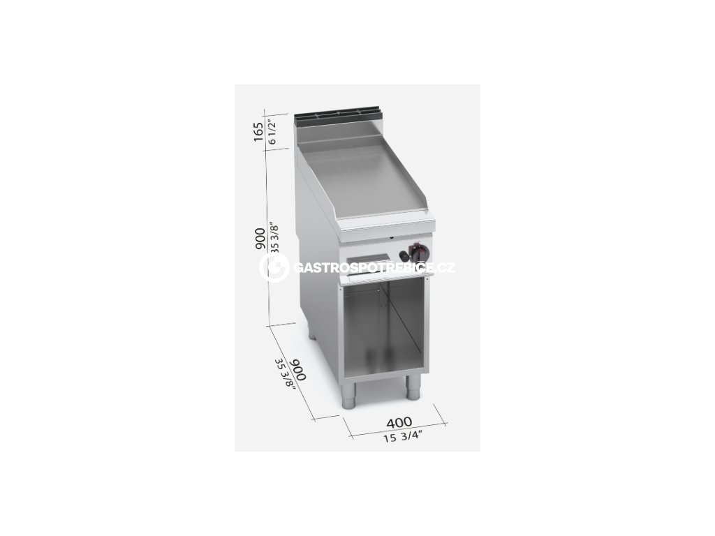 Termostatický ventil 30 až 300°C pro přesnou a bezpečnou regulaci. Termočlánek a chráněný zápalný plamínek. Deska je hladká jež usnadňuje čistění, zvýšené postranní lemy. Kompaktní provedení s otevřeným podstavcem. Kompletní sortiment plynových a elektrických ploten s různým provedením grilovací plochy. Lze na nich připravovat pokrmy tzv. "kontaktem" a to nejcitlivějším způsobem. Jednotný systém distribuce tepla zaručuje rovnoměrné grilování po celé pracovní ploše, velké energetické úspory a zlepšení pracovního prostředí. Při grilování se přirozeně tvoří zbytkový olej, který je odváděna shromažďován ve velké odpadní nádobce. Provedení: plyn Povrch desky: ocel Rozměr plotny: 390 x 660 mmDoplňkové parametry