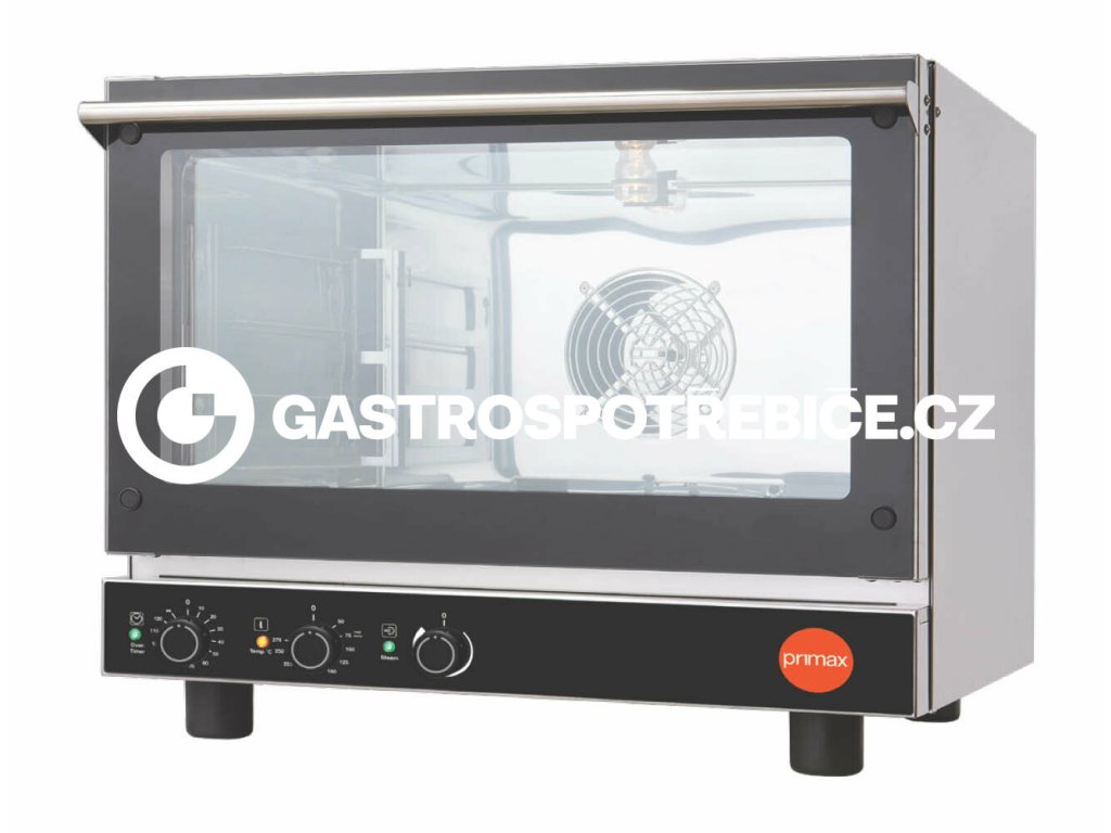 Pekařská a cukrářská pec Fast Value FV-SME904-HR řízené zvlhčování do komory (snadno regulovatelné zvlhčování) model umožňující připojení na vodu a odpad Pekařské a cukrářské pece předního Italského výrobce firmy Primax jsou vyrobeny v Itálii z evropských komponentů a kvalitní nerezových materiálů, sestaveny pod přísnou kontrolou v moderním funkčním designu. Pece FAST jsou ideálním řešením pro lehčí provozy k přípravě čerstvého, nebo zmraženého pečiva a dalších produktů. Pece jsou ideální pro kavárny, bary, rychlá občerstvení, čerpací stanice, plovárny. Celonerezové provedení AISI 430 (304), izolovaná komora (keramická vlákna), nerezový varný prostor (AISI 304) se zaoblenými hranami a lisovaným dnem. Snadné manuální ovládání s nastavení teploty 50°- 270°C, nastavením času 0 - 120 min. a trvalý chod (nekonečno). Model je v provedení se snadným "regulovatelným" zlhčováním (nastavení množství zvlhčování do komory) pomocí otočného ovladače. Optimální prodění vzduchu zajišťuje výkonný "reverzní" ventilátor (240W) a výkonná nerezová tělesa Incoloy 800 (5,5kW), Komora je vybavena vnitřním osvětlením a snadno vyjímatelným odolným těsněním. Odvětrávaná výklopná dvířka s dvojitým sklem a nerezovým bezpečné umístěným madlem. Nerez vyjímatelné zásuvy s roztečí 70 mm. Celonerezové provedení AISI 430 nerezový varný prostor AISI 304 se zaoblenými hranami izolovaná varná komora (keramická vlákna) snadné mechanické ovládání nastavení teploty 0-270°C nastavení času 0-120min + nekonečno mechanický regulátor pro nastavení zvlhčování do komory výkonná nerezová topná tělesa Incoloy 800 výkonný ventilátor s reverzním chodem vnitřní halogenové osvětlení snadno vyjímatelné těsnění varné komory odvětrávaná výklopná dvířka s dvojitým sklem nerez vyjímatelné zásuvy s roztečí 70mm kapacita komory pro 4 plechy EN 600x400mm (GN1/1) model umožňující připojení na vodu a odpad přípojka na vodu (Ø 3/4" / 1,5-2 bar / trvdost 4-12°F) komora vybavena odpadní trubkou (odvod vody z komory). Kapacita 4x 600x400mm (GN1/1) Ventilovaná (reverzní ventilátor) Řízené zvlhčování do komory Příkon /Napětí: 5,8kW/400VDoplňkové parametry