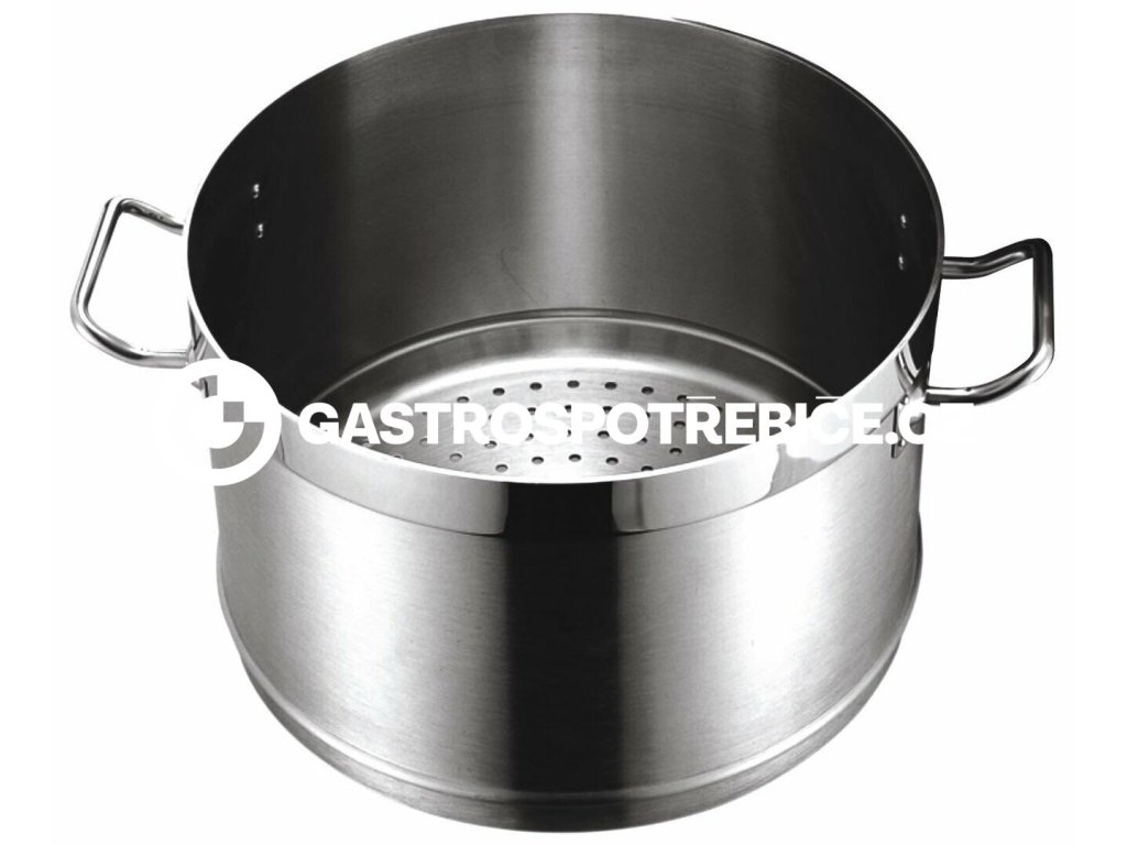 Pařákový hrnec je nezbytnou součástí vybavení každé kuchyně. Využijete ho pro ohřev klasických českých knedlíků, ale i pro přípravu ovocných kynutých knedlíků, úpravu zeleniny a přípravu velmi dietních pokrmů vařených v páře. Jemně satinovaný nerezový pařákový hrnec (18/10) lze využít i jako náhražku konvektomatu například k udržení teploty připravených příloh. Hrnec má velká ucha, což zajišťuje pohodlnou manipulaci. Nabízíme jej ve dvou velikostech, v průměru 450 a 500 mm. Představení společnosti Hledáte levné, ale přesto výkonné zařízení do nového provozu? Vybírejte z produktové řady ECO. V té se snoubí kvalitní materiály a zpracování s jednoduchými a funkčními tvary. S těmito produkty se vyplatí začít – nezradí Vás. ECO je synonymem pro ekonomický přístup, který se však snaží neubírat na kvalitě a proto zde najdete kvalitní pánve i hrnce, které Vám vydrží a obstojí i ve větším provozu. Nebojte se být ECO! Průměry: 36 - 50 cm Výšky: 24 - 30 cm Otvory ve dně: Ø6 mmDoplňkové parametry