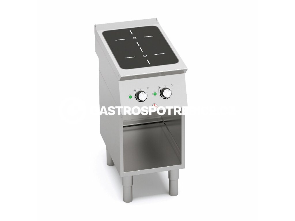 Keramická varná deska, tloušťka 6 mm (snadná každodenní údržba bez použití agrasivních prostředků). Maximální úspora energie, vytápění varné plochy je pouze při kontaktu hrnce s varnou plochou. Velikost topných zón je samo-regulovana podle průměru nádobí. Při odstranění nádobí z povrchu je automaticky přerušeno vytápění. Elektronická regulace teploty je prováděna potenciometrem. Kompaktní provedení s otevřeným podstavcem. Model TOUCH s dotykovým elektronickým ovládáním. Pracovní deska z kvalitní nerez oceli AISI 304 tloušťka 2 mm (20/1), přední a boční opláštění z nerezové oceli AISI 304. Termostatický ventil 30 až 300°C pro přesnou a bezpečnou regulaci. Termočlánek a chráněný zápalný plamínek. Dvojvrstvá grilovací plotna (umístěná v prolisované zesílené pracovní desce, tloušťka 2 mm, vybavena odtokovým otvorem) složená z ocelového plátu a horní vrstvy z nerez oceli AISI 316 s leštěným povrchem, který umožňuje snadné čištění. Nízká úroveň odlesku zvyšuje komfort při práci. Příkon: 2 x 3,5 kW Počet zón: 2 Hmotnost: 40 kgDoplňkové parametry