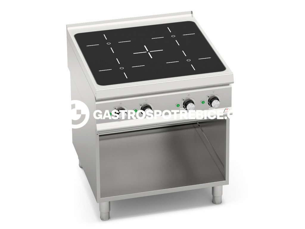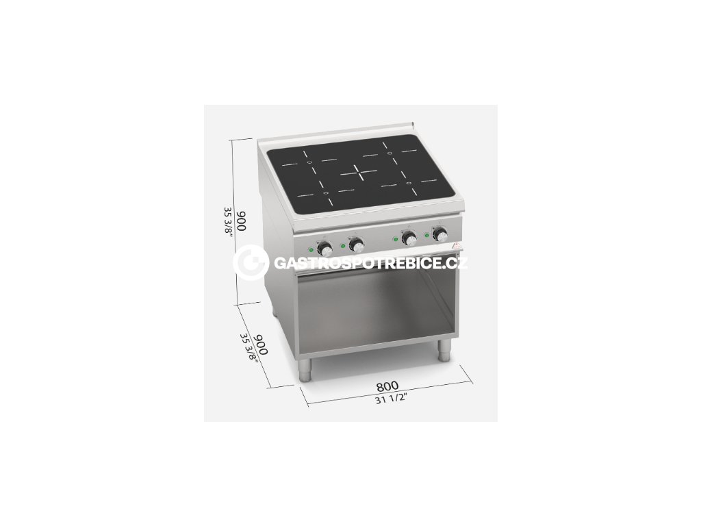 Keramická varná deska tloušťka 6 mm. Maximální úspora energie, vytápění varné plochy je pouze při kontaktu hrnce s varnou plochou. Velikost topných zón je samo-regulovana podle průměru nádobí. Při odstranění nádobí z povrchu je automaticky přerušeno vytápění. Elektronická regulace teploty je prováděna potenciometrem. Kompaktní provedení s otevřeným podstavcem. Provedení: indukce Počet ploten: 4 Celkový příkon: 20 kWDoplňkové parametry