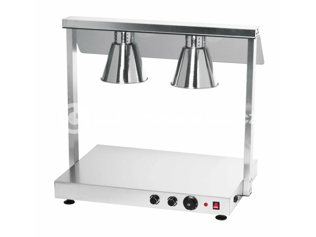 Infra lampa se spodní ohřevnou deskou. Regulace teploty desky (500W) a individuální regulace výkonu jednotlivých infra lamp (2x250W). Nerezové provedení a plexi zákryt. Součástí balení jsou 2ks infra žárovek 250W.Doplňkové parametry