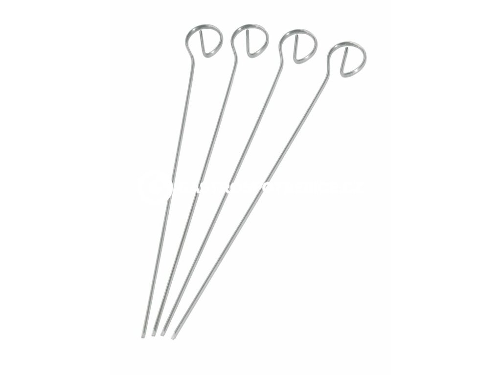 Set 4 jehel. Nerezové jehly na špízy s okem a špičkou na straně druhé. Délka jehel je 210 mm a síla jehly 2x4 mm. Obdélníkový průřez jehly. Materiál: nerez Délka: 21 cm Průřez jehly: obdélníkDoplňkové parametry