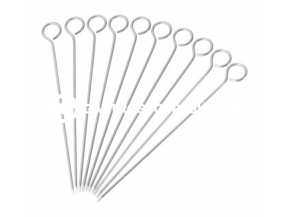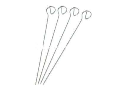 Set 4 jehel. Nerezové jehly na špízy s okem a špičkou na straně druhé. Délka jehel je 210 mm a síla jehly 2x4 mm. Obdélníkový průřez jehly.