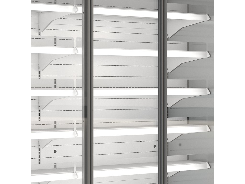 NA OBJEDNÁVKU • Model York Plus výška 225 cm: 6 chlazených nastavitelných polic – příplatek dle délky vitríny • Verze na zeleninu - nerezová záda a strop • nízkoenergetické ventilátory • odtávací tyč pod výparníkem • celonerezová verze: nerez H17 - příplatek 30 %, nerez H18 - příplatek 40 % k doporučené ceně • snížená verze výška 190 cm (možnost objednání pro všechny typy): • spojování do sestav – bočnice 5 cm • lakované police • nerezové police • tyče a háky na uzeniny • H18 nerezová vana u výparníku • LED osvětlení polic • plexi zábrana • plexi přepážka mezi moduly • hloubka 110 cm • odpadové čerpadlo na kondenzát • jiné barevné provedení RAL • bez příplatku: LED osvětlení barva bílá teplá nebo růžová (na maso) ventilované chlazení|verze s křídlovými dveřmi|nástřikový ventil - možnost chladiv R452A, R448A, R449A|dvojitá izolační skla|bez zabudovaného agregátu (chladicí výkon 900 W / 1 bm při odpařovací teplotě -10 °C)|digitální termostat|automatické odtávání|chlazená výstavní plocha|chlazené nastavitelné police - nosnost 150 kg / m2|plexi zábrana police - 2 horní řady|LED osvětlení vitríny horní a boční - barva bílá studená|plné nebo prosklené bočnice|cenovkové lištyDoplňkové parametry