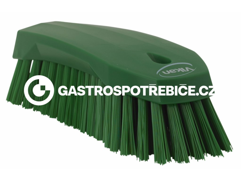 Víceúčelový ruční kartáč pro čištění stolů, velkých nádob, strojů a dalších zařízení s obtížně přístupnými rohy a štěrbinami. Konec kartáče je opatřený tvrdšími štětinami pro odstranění odolných nečistot. Vikan je přední světový výrobce čistícího nářadí. Výrobky dánské společnosti usnadňují úklid zákazníkům od Spojených států až po Čínu. Firma dodává smetáky, kartáče, vědra a další produkty.Doplňkové parametry