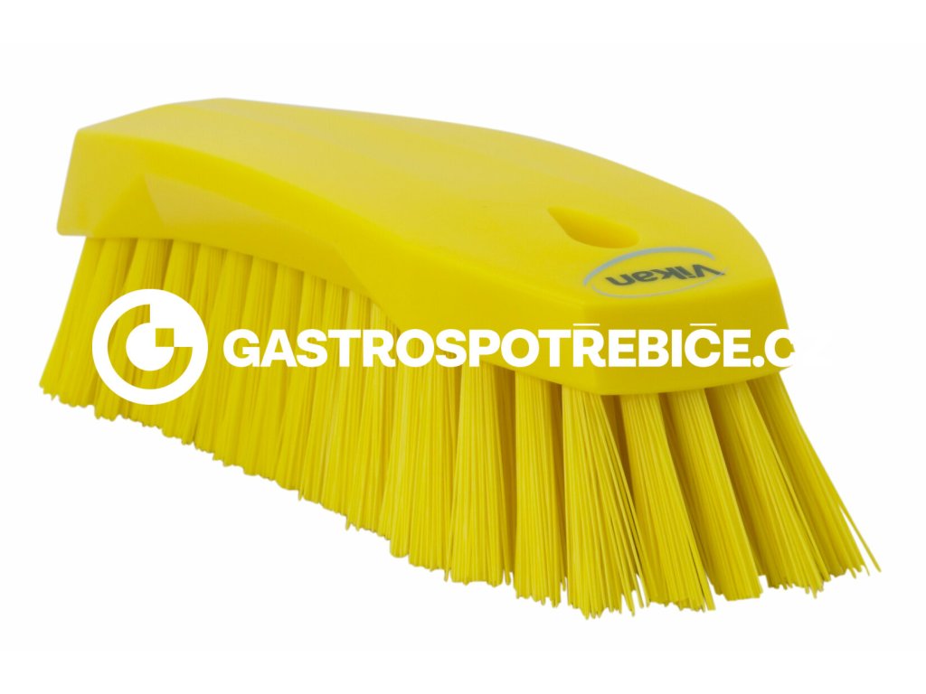 Víceúčelový ruční kartáč pro čištění stolů, velkých nádob, strojů a dalších zařízení s obtížně přístupnými rohy a štěrbinami. Konec kartáče je opatřený tvrdšími štětinami pro odstranění odolných nečistot. Vikan je přední světový výrobce čistícího nářadí. Výrobky dánské společnosti usnadňují úklid zákazníkům od Spojených států až po Čínu. Firma dodává smetáky, kartáče, vědra a další produkty.Doplňkové parametry