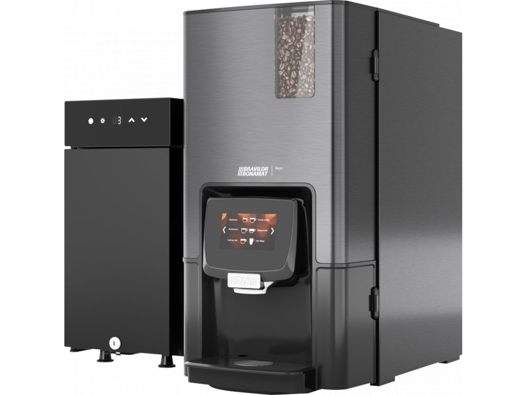 Automatický kávovar SEGO 11L od výrobce BRAVILOR BONAMAT. plně automatický kávovar s připojením na vodu 2 zásobníky (1× zásobník pro zrnkovou kávu 1,2 kg, 1× zásobník pro instatní nápoje 1× 1,3 l) 1 x mlýnek kávy (káva je vždy připravena z čerstvě namletých kávových zrn) dotyková obrazovka menu s 30 předvolbami programovatelné nastavení (konzistence mletí, velikost šálku, poměr vody / kávy) úsporný režim režim chytré kontroly (upozorní například na plný odpadní koš, či potřebu provést odvápnění) indikátor automatického odvápnění čistící a oplachový program připojení na vodu 3/4" snadná údržba Výkon za 1 hodinu: espresso: 120–150 šálků káva: 80–100 šálků instantní nápoje: 240 šálků Nápoje: coffee crema café au lait cappuccino espresso espressochoc americano latte macchiato moccachino horká čokoláda horká čokoláda deluxe horká voda Nerezové provedení v tmavě šedé barvě.Doplňkové parametry