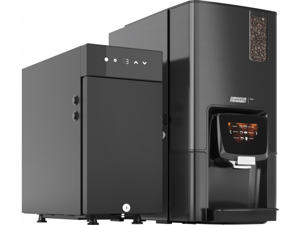 Automatický kávovar SEGO 12L od výrobce BRAVILOR BONAMAT. plně automatický kávovar s připojením na vodu 3 zásobníky (1× zásobník pro zrnkovou kávu 1,2 kg, 1× zásobník pro instatní nápoje 1× 1,3 l) 1 x mlýnek kávy (káva je vždy připravena z čerstvě namletých kávových zrn) dotyková obrazovka menu s 30 předvolbami programovatelné nastavení (konzistence mletí, velikost šálku, poměr vody / kávy) úsporný režim režim chytré kontroly (upozorní například na plný odpadní koš, či potřebu provést odvápnění) indikátor automatického odvápnění čistící a oplachový program připojení na vodu 3/4" snadná údržba Výkon za 1 hodinu: espresso: 120–150 šálků káva: 80–100 šálků instantní nápoje: 240 šálků Nápoje: coffee crema café au lait cappuccino espresso espressochoc americano latte macchiato moccachino horká čokoláda horká čokoláda deluxe horká voda Nerezové provedení v tmavě šedé barvě.Doplňkové parametry
