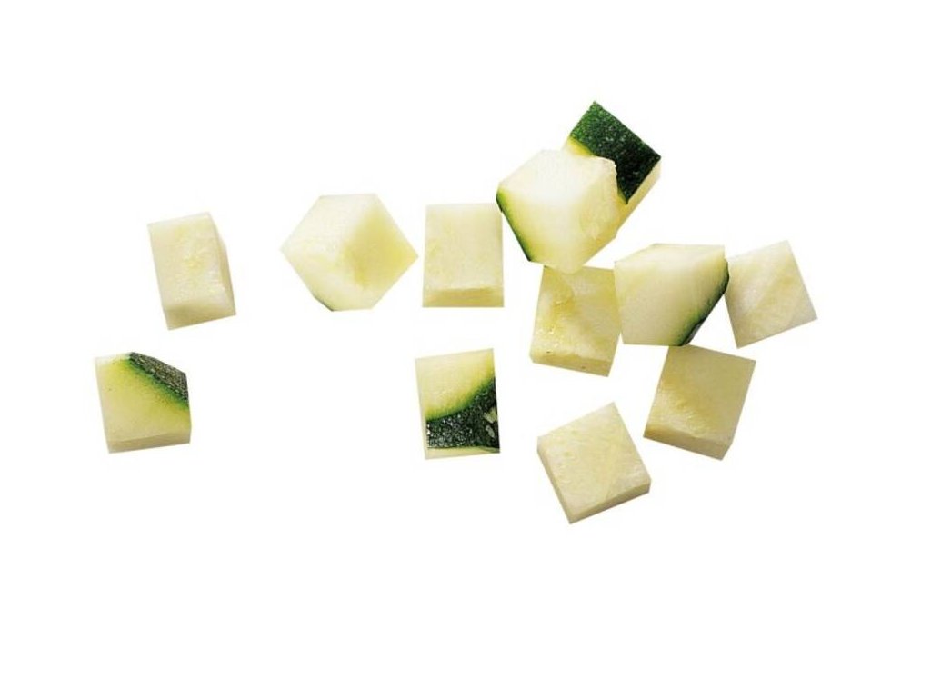 Kostičkovač 14×14×14 mm s povrchovou úpravou Mineral + vysoká odolnost zachování čerstvosti optimální ochrana povrchu disku snižuje se tření disku snadné čištění (lze mýt v myčce nádobí, ale pozor na ztupení břitů)