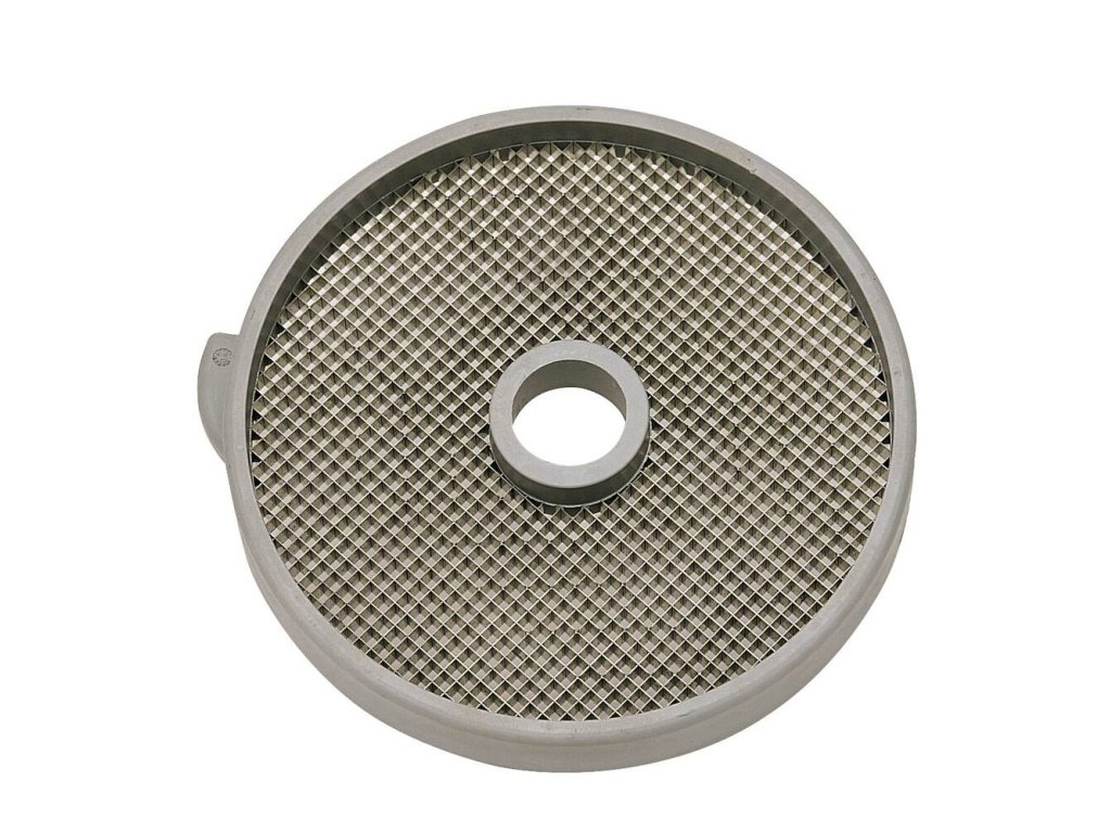 Kostičkovač 5×5×5 mm s povrchovou úpravou Mineral + vysoká odolnost zachování čerstvosti optimální ochrana povrchu disku snižuje se tření disku snadné čištění (lze mýt v myčce nádobí, ale pozor na ztupení břitů)