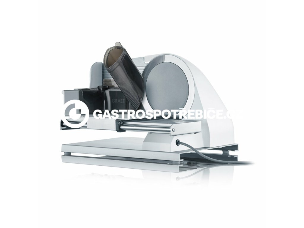Bílá varianta vysoce kvalitního kráječe, na který je spoleh ve všech ohledech. Tichý motor o výkonu 185 W, nastavitelná tloušťka krájení a odolné provedení zaručují ten nejlepší výsledek i uživatelský zážitek. Díky praktickému provedení lze výrobek snadno a rychle čistit. Hladká ocelová čepel se dá brousit i doma. Kráječ je velmi stabilní a jednoduše se ovládá. Typický vzhled produktů Graef se perfektně hodí k doplnění příjemného vzhledu vaší kuchyně. Hmotnost je 9.645 kg. ŘADA KUCHAŘE Nepostradatelní pomocníci do ambiciózní kuchyně - S těmito spotřebiči se každý může vydat na lov vůní a objevovat překvapivé chutě. Kráječe "Made in Germany" Již více než 60 let jsme jako rodinná společnost GRAEF zastánci výjimečného zpracování, odolnosti a v neposlední řadě designu našich univerzálních kráječů. Hodnotový řetězec našich kráječů – od vývoje a výroby až po finální úpravy, logistiku a opravy – probíhá v hlavní továrně v Arnsbergu v Sauerlandu. Jsou tedy „vyrobené v Německu v celé své kráse“ a představují odpovědné jednání a udržitelné podnikání. 5 let záruka Extra dlouhá pětiletá záruka je příslibem kvality. V tomto kráječi jsou použity pouze ty nejlepší a odolné materiály. Například hladká masivní ocelová čepel s dutým broušením nabízí profesionální kvalitu. Kromě toho je kondenzátorový motor absolutně bezúdržbový při používání po desetiletí v jiných modelech Graef. Uvedená záruka je platná pouze při použití v domácnosti. V případě komerčního využití (lehký provoz a zatížení) se záruka řídí standardními obchodními podmínkami. Tenký řez Díky vysoce výkonnému motoru a 19 cm masivní ocelové čepeli lze šunku nakrájet najemno. Snadné čištění Skládací vozík vyrobený z tvrdého eloxovaného hliníku se snadno čistí. Bezpečné vedení vozíku Přesné vedení vozíku pomocí kruhové vodicí tyče. Vypínač Zapínání a vypínání na posuvném profilu Výkonný motor Vysoce výkonný a bezúdržbový kondenzátorový motor 185 W zaručuje nejlepší výsledky řezání díky konstantní rychlosti motoru. Pevná ocelová čepel Čepel z masivní oceli Ø 190 mm vyrobená z jednoho kusu speciální nerezové oceli. Plně kaleno s dutým broušením. Zdarma dárek v ceně: nástavec Mini-Slice Vysoce kvalitní, samonosný celokovový kráječ - do sofistikované kuchyně Hladkou pevnou ocelovou čepel lze brousit doma Plynule nastavitelná tloušťka krájení, 0-15 mm Pevný, eloxovaný a otěruvzdorný hliníkový dorazDoplňkové parametry