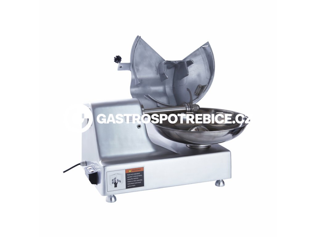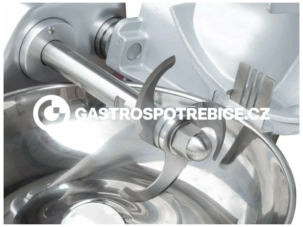 Kutr stolní mísový K-13 s 3 nožovou řeznou hlavou, určen pro krájení (rozmělnění, rozsekání a promíchání) syrového a vařeného masa, ryb, brambor, cibule, vařené a syrové zeleniny. Zařízení je ideální pro lehké provozy, řeznictví, prodejny masa, lahůdkářské provozy, hotely a další gastro provozy, ale i hobby použití. Zařízení na HOMOGENIZACI (proces,při kterém se díky promíchávání původní směsi dosáhne stejnorodé látky), hnětení různých druhů paštik a náplní do klobásek. Mísa, hřídel a nože jsou vyrobeny z nerezové oceli, mísa je odnímatelná (bajonetové uchycení), hřídel se 3 noži (možno demontovat), robustní a stabilní konstrukce kutru, opláštění z eloxovaného hliníku, víko mísy je odnímatelné pro snadnou, údržbu a čistění. Ovládací panel a další bezpečnostní prvky (mísa, víko) jsou vyrobeny v souladu s požadavky na zdraví a bezpečnost práce. Zařízení se snadno ovládá a udržuje v čistotě. TECHNICKÉ ÚDAJE: Napětí: 230 V Objem mísy: 10 L Výkon: 0,75 kW Otáčky 1440 ot./min Rychlost nádoby: 12 ot./min. Rozměry: 760 x 515 x 452 cm Váha: 54 kg