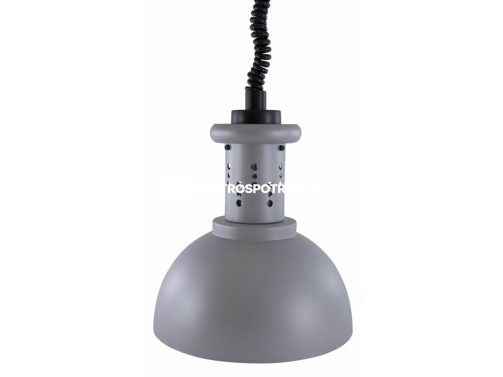 Závěsná lampa v elegantním šedostříbrném provedení. Ideální do prodejních prostor. S infra lampou nasvítíte pokrmy a udržíte je déle teplé. Atraktivní vzhled nasvícených produktů, ideální pro přímý prodej pokrmů TO-GO jako například pizza, masové pokrmy nebo i pasta. Materiál: šedostříbná Průměr: Ø 23 cmDoplňkové parametry